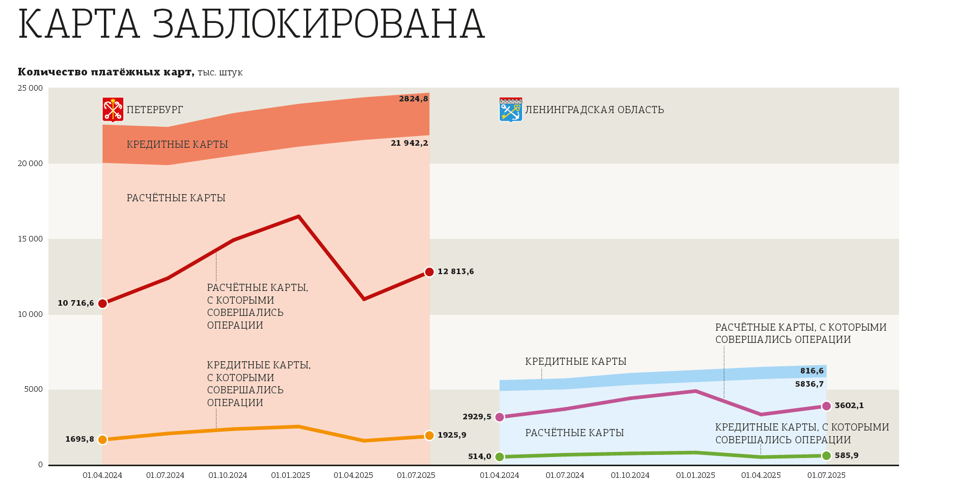 Осенью появился период "охлаждения" до нескольких суток на получение кредитных средств, а также на получение наличности в банкоматах. Летом Росфинмониторинг получил право блокировать подозрительные, по его мнению, операции без решения суда. С 1 декабря планируется ввести новый запрет: не более пяти платёжных карт одной кредитной организации или в сумме не более 20 любых банков в одних руках. Как появляются карты в кошельке Обоснованием для запрета стала борьба с дропперами: это граждане, которые за небольшое вознаграждение участвуют в цепочках обналичивания денежных средств. Или просто отдают свои карты третьим лицам: бизнес не хочет платить налог, переводит крупную сумму на счета нескольких других юрлиц, те в свою очередь — на счета индивидуальных предпринимателей и граждан, чтобы они уже получили их в банкоматах и передали заказчику. Помнить обо всех запретах, принятых в 2025 году по банковским операциям, сложно. Люди узнают об их существовании в самый неприятный для себя момент: при смене сим–карты, снятии наличности после закрытия депозита или при переводе денег через СБП в другой банк. О том, что нельзя иметь больше какого–то количества банковских карт, вероятно, люди также будут узнавать по мере их принудительных блокировок. По данным ЦБ РФ, 98% населения являются добропорядочными держателями банковских карт и совершенно точно не столкнутся с ограничениями. Законодатель утверждает, что у рядового гражданина в нормальном режиме жизни не должно быть больше трёх карт: на одну он получает зарплату, вторая — кредитная, а третья — допустим, от банка–маркетплейса. Но реальные истории отличаются от предлагаемых стандартов. Современные работодатели часто меняют зарплатные проекты, в результате у работника за пару–тройку лет может скопиться две–три дебетовые карты. Плюс — несколько кредитных, ибо тот же самый "зарплатный" проект практически всегда приходит на работу с условием их выпуска. Добавим сюда Единую карту петербуржца, а также последствия пропаганды последних лет о безопасности интернет–покупок (для них рекомендовали выпускать отдельные цифровые карты). Если когда–то открывались депозиты или получались кредиты — количество "пластика" увеличивается. Маркетплейсы предлагают скидки, если оплата совершается через карты их собственных банков, — и их как минимум два. И безусловно, кешбэки: в одной кредитной организации возвращают 5% за услуги ЖКХ, во второй — за супермаркеты, в третьей — мы копим мили, в четвёртой — в зависимости от того, что выпадет на барабане. В результате у более–менее экономически активного человека уже сейчас может быть более 10 единиц пластика или цифровых инструментов платежа. За год в Петербурге среднее количество карт у одного жителя выросло на 10%, с 4 до 4,4 штуки (в возрасте от нуля до бесконечности).