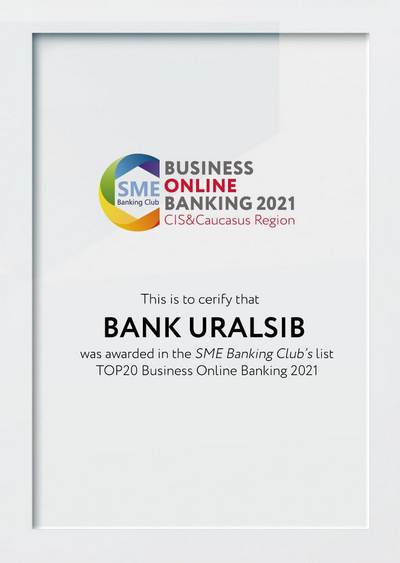 По итогам 2020 года система дистанционного банковского обслуживания Уралсиб – Бизнес Online вошла в Топ-20 лучших Интернет-банков для бизнеса по версии международной ассоциации бизнес-банкиров SME Banking Club*. Исследование Business Online Banking 2021 включало анализ функционала 85 интернет-банков для бизнес-клиентов в 11 странах. Каждый интернет-банк оценивался экспертами SME Banking Club по 150 параметрам с точки зрения представления максимально возможного функционала дистанционного обслуживания для бизнеса. Банк Уралсиб вошел в число двадцати финалистов премии Business Online Banking 2021 в странах СНГ и Кавказа. Уралсиб – банк комплексных решений для бизнеса. Входит в Топ-10 рейтинга крупнейших банков по объемам кредитования МСБ, активно развивает цифровые сервисы для предпринимателей. В рамках экосистемы для бизнеса Уралсиба клиенты в режиме «одного окна» могут получить полный комплекс продуктов и услуг: кредитные продукты, РКО, гарантии, удобные финансовые и нефинансовые цифровые сервисы, а также бесплатное обучение в «Университете бизнеса Уралсиб» и помощь при выборе программы господдержки.