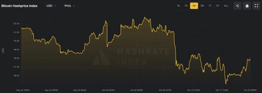 Их оценку подтверждают данные Hashrate Index. После масштабной коррекции крипторынка 11 октября хешпрайс стабильно находится ниже отметки $49 за PH/s в сутки. Более низкие значения метрики в этом году фиксировались в апреле, когда курс биткоина обвалился ниже $90 000.
