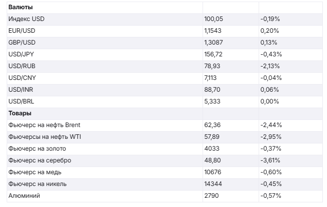 В пятницу утром индекс доллара торгуется возле отметки 100,1, то есть DXY пока не смог преодолеть сопротивление на 100,3 и опять отошел вниз. На этом фоне пара EUR/USD этим утром консолидируется возле отметки 1,154, показывая на этой неделе ослабление на 0,68%. Курс британского фунта стерлингов за последние сутки смог показать остановку падения против доллара и в конце недели слегка восстановился до 1,309. Схожая динамика остановки падения за последние дни показывает японская иена. В пятницу утром пара USD/JPY укрепляется на 0,36% и торгуется на 156,85. Курс китайского юаня вчера также прекратил ослабление к доллару и этим утром торги USD/CNY идут возле 7,113.