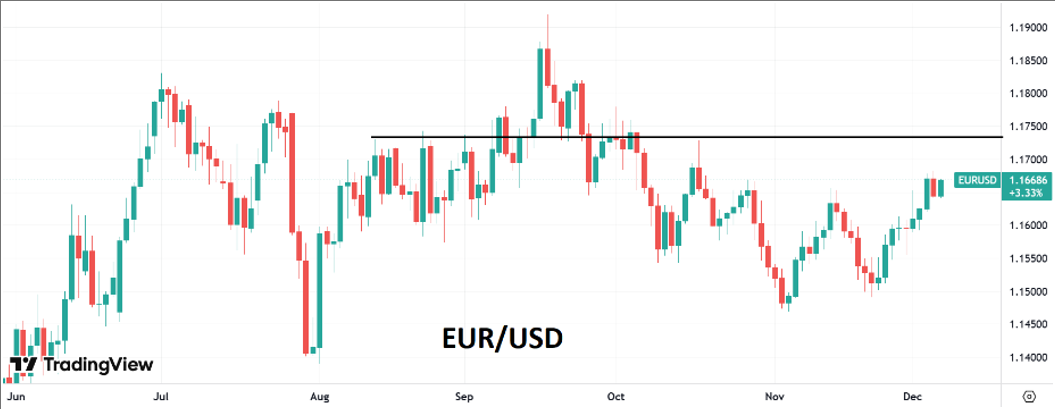 В четверг и пятницу индекс доллара консолидируется возле уровней месячных минимумов в районе 98,9. На этой неделе DXY потерял уже 0,54%, против аналогичного снижения неделей ранее. В свою очередь курс евро прибавил в весе и сейчас восстановился до 1,166. Пара GBP/USD также продолжает смотреть вверх и сейчас торги идут возле 1,335, то есть вблизи месячных максимумов. На фоне общего ослабления курса доллара пара USD/JPY снижается и в пятницу курс иены укрепился до 154,6. Курс китайского юаня вчера и сегодня обхаживает максимальные годовые уровни к доллару в районе 7,067. В ходе торгов в четверг DXY получил небольшую поддержку в виде небольшого повышения доходности казначейских облигаций США: 10-летние USTres в четверг давали 4,095%, против 4,055% днем ранее. На ожиданиях декабрьского заседания ФРС участники рынка продолжали оценивать прогнозы поведения ключевой ставки ФРС на предстоящий год. Данные по рынку труда США укрепили ожидания того, что ФРС снизит ставку на 25 б.п. в середине следующей недели – вероятность такого события сейчас поднялась почти до 90%. На этой неделе было отмечено неожиданное снижение числа рабочих мест, измеряемых ADP, в то время как сокращения рабочих мест, отслеживаемые в отчете Challenger, выросли на 25% по сравнению с тем же годом. Но помимо слабеющего рынка труда есть еще и фактор повышенной инфляции, который может помешать ФРС провести несколько снижений ставки в следующем году. Вышедшие вчера данные показали, что число первичных заявок на пособие по безработице в США упало на 27 тыс по сравнению с предыдущей неделей и достигло 191 тыс – это значительно ниже рыночных ожиданий в 220 тыс и является самым низким уровнем с сентября 2022 года. При этом число повторных заявок сократилось на 4 тыс по сравнению с предыдущим периодом до 1,939 млн. Эти оперативные данные говорят, что массовых увольнений в стране пока нет, а есть просто замедление найма новых работников. Однако сокращение рабочих мест в США зафиксировано в последнем обзоре Challenger. Работодатели США объявили о сокращении 71 321 рабочих мест в ноябре 2025 года, что является самым высоким показателем за месяц с 2022 года, по сравнению с 57 727 годом ранее и против октябрьского уровня 153 074. С начала года общее число сокращений рабочих мест достигло самого высокого уровня с 2020 г. Тем временем работодатели США объявили о планах по найму 9074 сотрудников в ноябре 2025 года, что является самым низким показателем за три месяца. Также вчера стало известно, что новые заказы на промышленные товары США выросли в сентябре на 0,2% м/м после пересмотренного роста на 1,3% в августе и не оправдали ожиданий подъема на 0,5%. Без учета транспорта новые промышленные заказы также выросли на 0,2% после снижения на 0,1%, в то время как без учета оборонной промышленности заказы остались на прежнем уровне после роста на 0,7% в предыдущем месяце. Что касается ситуации в еврозоне, то курс евро чувствует себя неплохо на фоне слабости доллара. Вчера вышли данные, показавшие, что объемы розничных продаж в еврозоне в октябре остались на прежнем уровне после скромного подъема на 0,1% в сентябре, не оправдав ожиданий роста на 0,1%. Однако в годовом исчислении розничная активность демонстрирует более высокую динамику: продажи выросли на 1,5% по сравнению с 1,2% в сентябре и немного превысили ожидания прироста на 1,3%. Риторика представителей ЕЦБ, выступавших на это