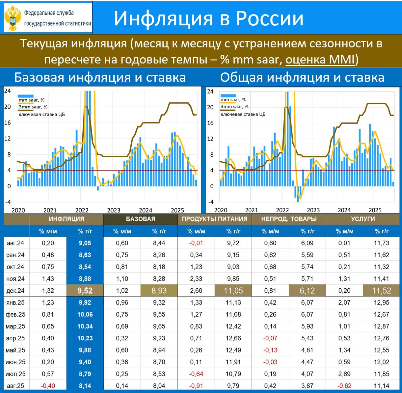 ИПЦ в августе: -0.40% мм / 8.14% гг - ниже недельных оценок (-0.24% мм).