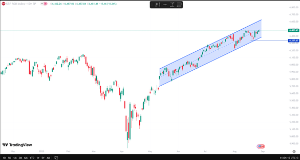 S&P 500 Котировки индекса S&P500 продолжают движение в восходящем канале. Сейчас цена движется к верхней границе канала в 6615 п. При наличии негативного новостного фона возможна коррекция к уровню в 6337 п.