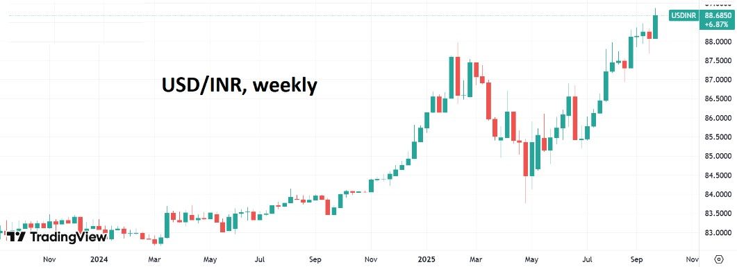 Новая волна роста индекса доллара в четверг подняла его курс до ближайшего сопротивления на 98,6 – это трёхнедельные максимумы. В пятницу рынки ждут свежих данных по инфляции в США (Core PCE), чтобы оценить шансы на снижение ставки ФРС. Ослабление пары EUR/USD опустило сейчас курс евро до 1,165 – минимум с начала сентября. Как и ожидалось, британский фунт вчера снизился к минимумам месяца 1,333 по отношению к доллару. На этой неделе британская валюта теряет около 0,9%. Пара USD/JPY вчера вышла вверх из полуторамесячного диапазона консолидации и этим утром курс доллара приблизился к отметке 150 иен. Китайский юань слабеет против доллара вместе с другими мировыми валютами: пара USD/CNY сейчас поднялась до 7,135. Инвесторы по-прежнему сосредоточены на том, снизит ли ФРС ставку в следующем месяце, несмотря на то, что свежие статданные указывают на то, что экономика США сохраняет устойчивость, а ситуация на рынке труда неожиданно улучшилась. Прежде всего в пользу доллара в четверг сыграло повышение доходности по USTres. 10-летние бонды в четверг давали 4,19% против 4,02% в середине месяца. Их подъему способствовали сильные данные по экономике США, а первичные заявки на пособие по безработице упали до самого низкого уровня с июля, при этом заказы на товары длительного пользования неожиданно выросли, а дефицит торговли товарами сократился больше, чем ожидалось. Согласно окончательным данным, ВВП США во втором квартале 2025 года вырос на 3,8% в годовом исчислении, что значительно выше 3,3% во второй оценке и является самым сильным показателем роста с третьего квартала 2023 г. Пересмотр в лучшую сторону стал возможен за счет переоценки показателя потребительских расходов в сторону повышения: они выросли на 2,5% (против 1,6% во второй оценке). Инвестиции в основной капитал также были пересмотрены в сторону повышения (4,4% против 3,3% во второй оценке). Был также пересмотрен вклад чистой торговли: экспорт сократился на -1,8% (против -1,3%), а импорт сократился на -29,3% (против -29,8%). Вчера также стало известно, что число первичных заявок на пособие по безработице на прошлой неделе снизилось на 14 тыс по сравнению с предыдущей неделей и достигло 218 тыс - самый низкий показатель за два месяца. Это значительно ниже консенсус-прогноза рынка (235 тыс). Такие данные опровергают страхи инвесторов по поводу резкого ухудшения ситуации на рынке труда США. Заказы на товары длительного пользования в США выросли в августе на 2,9% м/м до $312,1 млрд против спада на 2,7% в июле и оказались лучше рыночных оценок снижения на 0,5%. Между тем заказы на необоронные капитальные товары, за исключением самолетов, которые являются тщательно отслеживаемым показателем планов предприятий по расходам, выросли в августе на 0,6% после роста на 0,8% в предыдущем месяце. Продажи существующего жилья в США снизились на 0,2% м/м, достигнув в августе 2025 года 4,00 млн в годовом, превысив консенсус-прогноз рынка в 3,96 млн продаж. Тем не менее, продажи домов пока остались ниже среднегодового уровня. В четверг курс швейцарского франка по отношению к доллару слабел (-0,6%) вместе с другими мировыми валютами и пара USD/CHF достигла отметки 0,8. Вчера Швейцарский Национальный Банк (SNB), как и ожидалось, сохранил свою процентную ставку на нулевом уровне. Это сейчас самый низкий уровень ставки среди основных центральных банков. SNB предупредил, что повышение американских 
