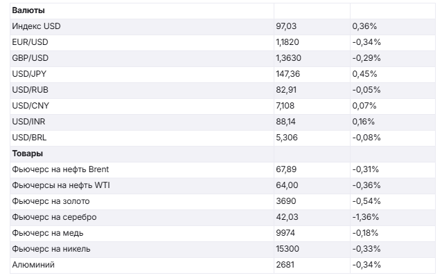 В среду вечером стали известны итоги сентябрьского заседания ФРС. Регулятор снизил ставку на 0,25%, как и ожидалось. На индекс доллара это повлияло благоприятно: DXY к утру четверга восстановился до 97,3. Пара EUR/USD вчера вечером резко подскочила до 1,191, однако потом началась коррекция и этим утром евро торгуется в районе 1,179. Курс британского фунта повел себя схожим образом: после подскока до 1,372 GBP/USD развернулся вниз и сегодня утром снизился до отметки 1,36. Пара USD/JPY вчера показала ложный пробой ближайшей поддержки на 146,5 и сейчас иена вновь слабеет, торгуясь возле 147,5. Курс китайского юаня также прекратил укрепление к доллару и этим утром торги идут возле 7,108.