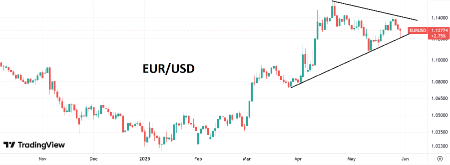Суд постановил прекратить действие большей части тарифов и запретил в будущем вносить в них какие-либо изменения. Администрации Д. Трампа дали 10 дней на выполнение предписания суда. Сразу после вынесения решения Белый Дом подал апелляцию на это судебное решение. Исход этого противостояния предугадать сложно, поскольку в Америке хорошо развита система сдержек и противовесов. На этой новости курс доллара еще немного укрепился, но техническая картина по нему от этого принципиально не поменялась. Отмена торговых тарифов может улучшить экономические перспективы США, но инвесторы пока не торопятся покупать доллары. Американская валюта остается вблизи своих минимумов года. Ключевыми факторами, которые могут повлиять на ее курс помимо протекционистской политики Д. Трампа (тарифные войны) являются: налоговая реформа (рост дефицита госбюджета), геополитическая обстановка (внешний контур политики Белого дома), действия ФРС и ожидания рынка по снижению процентной ставки. Сдержанный оптимизм по поводу торговых переговоров США и ЕС удерживает индекс доллара в конце мая от дальнейшего падения. Во вторник президент США Д. Трамп позитивно оценил усилия Евросоюза, направленные на заключение торговой сделки. Пессимизм по поводу экономики США снизился после того, как Д. Трамп ранее отложил план по введению 50%-ных пошлин на импорт товаров из ЕС. Напомним, что ФРС по итогам заседания 6-7 мая сохранила ставки без изменений, но в стейтменте отражены риски более высокой инфляции и безработицы. Вчера были опубликованы протоколы того заседания FOMC, в котором представители центробанка признали, что в ближайшие месяцы им, возможно, придется делать «трудный выбор» между растущей инфляцией и ростом безработицы. Поэтому ФРС сейчас заняла выжидательную позицию и продолжает ждать прояснения ситуации с внешней торговлей США. По сути, протоколы ФРС не дали никакой новой информации по динамике ключевых ставок. На данный момент инвесторы ожидают два снижения ставки на 25 б.п. до конца этого года (скорее всего, в сентябре и декабре). Что касается еврозоны, то судя по высказываниям представителей руководства ЕЦБ, ожидается, что в июне регулятор вновь снизит свои ключевые ставки, после чего наиболее вероятно будет взята пауза. Ее длительность будет зависеть от темпов инфляции в еврозоне и от развития ситуации с торговыми тарифами с США. За прошедшую неделю баланс ЕЦБ вырос на 2 млрд евро до 6,294 трлн евро, против сокращения на 9 млрд евро на прошлой неделе. С максимальных уровней (8,836 трлн евро) баланс ЕЦБ уменьшился на -2,542 трлн евро или на 28,7%. Этим утром пара EUR/USD опускалась до 1,121, но в последующие часы восстановилась до 1,128. Доходности на рынке госдолга Японии в последние дни не показывают нового роста на сообщениях о том, что власти Японии могут предпринять шаги для стабилизации своего рынка облигаций, включая возможное сокращение выпуска сверхдолгосрочных облигаций после того, как на прошлой неделе доходность взлетела там до рекордных максимумов. Опубликованный сегодня индекс потребительских настроений в Японии в мае показал подъем до 32,8, восстановившись с апрельского более чем 2-летнего минимума в 31,2. На этой неделе курс японской иены теряет против доллара около 1,9%. Торги USD/JPY сейчас идут чуть ниже отметки 146,0. Курс британского фунта стерлингов в последнее 
