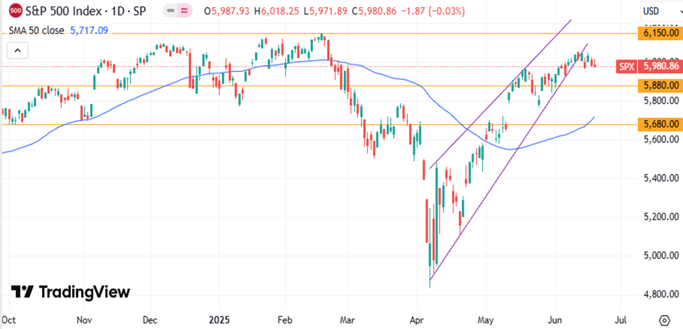 S&P 500 На дневном графике S&P 500 вышел вниз из локального восходящего клина. Ожидаем формирования коррекции с ближайшей целью на поддержке 5880 пунктов.