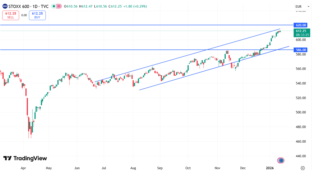 Euro STOXX 600 Индекс STOXX 600 торгуется на уровне 612 пунктов, уверенно закрепившись выше прежнего уровня сопротивления, который теперь выступает в роли поддержки на отметке 586 пунктов. При сохранении и усилении позитивных рыночных факторов индекс может продолжить восходящее движение и достичь уровня 620 пунктов.
