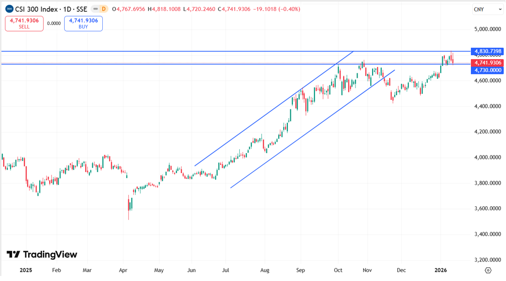 CSI 300 Индекс CSI 300 торгуется вблизи отметки 4 741,9 пунктов, удерживаясь выше зоны поддержки 4 730 пунктов. При сохранении покупательского импульса индекс может продолжить восстановление и протестировать ближайшее сопротивление в районе 4 830 пунктов.