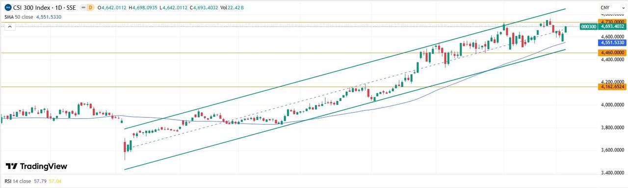 CSI 300 Индекс CSI 300 на дневном графике завершил торги у отметки 4693 пункта. Ключевым драйвером дальнейшей динамики выступает уровень сопротивления 4730: в случае уверенного пробития и закрепления выше этого рубежа откроется потенциал для дальнейшего роста. Если попытка ретеста окажется неудачной, вероятно формирование бокового диапазона с границами 4730–4460 пунктов, где индекс может провести ближайшие сессии в режиме консолидации.