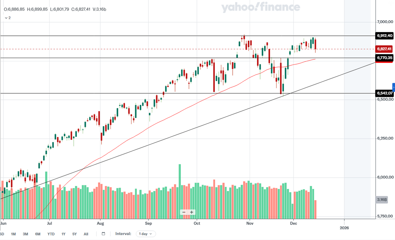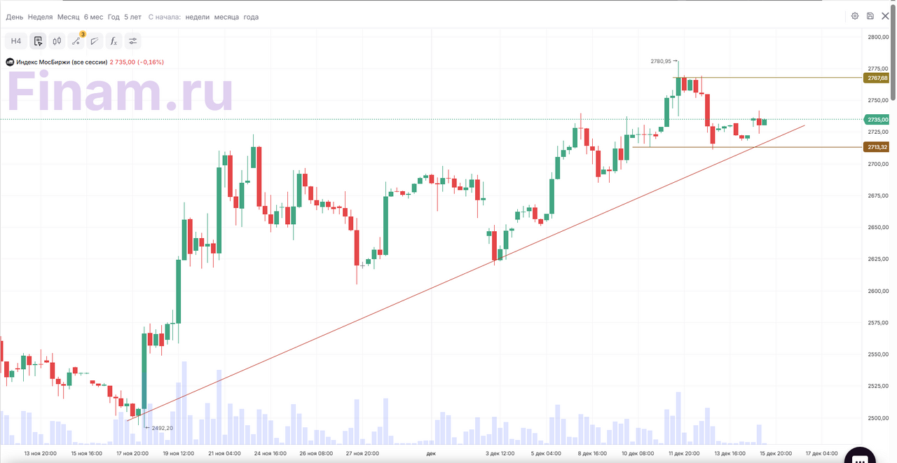 Фондовые индексы США завершили пятницу снижением: S&P 500 упал на 1,07% до уровня в 6827,41 п., Nasdaq Composite — на 1,69% до 23 195,17 п. Dow Jones Industrial Average снизился на 0,51% до 48 458,05 п. Такая ситуация сложилась из-за того, что компании Oracle и Broadcom стали основными источниками оттока капитала из сектора искусственного интеллекта. S&P 500 потерял 0,6% на прошлой неделе, а Nasdaq — 1,7%. Индекс Dow Jones, который менее подвержен влиянию технологий и ИИ, чем два других индекса, вырос на 1,1%. Акции Oracle упали на 12,7% за неделю, а Broadcom — более чем на 7%. Технологический сектор S&P 500 снизился на 2,3%. По мнению Эда Ярдени, президента Yardeni Research, в 2026 году лидирующие компании S&P 500 могут утратить свои позиции из-за усиления конкуренции в области искусственного интеллекта, и выгоду от этого, скорее всего, получат остальные компании индекса. Во вторник должны быть опубликованы данные по занятости в несельскохозяйственном секторе за ноябрь, а также данные по розничным продажам за октябрь. Публикация этих отчетов была отложена из-за приостановки работы правительства США осенью. Индекс потребительских цен за ноябрь будет опубликован в четверг. Европейский индекс STOXX 600 сегодня растет на 0,31% до 580,04 п. Французский индекс CAC 40 растет на 0,28%, DAX падает на 0,45% до 24 186,49 п. Европейские рынки в основном продолжают получать поддержку за счет сезонного притока капитала в конце года. Потребительские цены во Франции в прошлом месяце выросли на 0,8% в годовом выражении — этот показатель совпал с предварительной оценкой и остался на уровне октября, который является минимальным с мая. В Испании годовая инфляция в ноябре составила 3,2%, как и месяцем ранее, хотя ранее сообщалось о небольшом замедлении до 3,1%. После декабрьского заседания ФРС США, на котором ставка была ожидаемо снижена на 0,25 п.п., внимание инвесторов смещается к предстоящим решениям Европейского центрального банка и Банка Англии. Оба регулятора объявят решения по ключевым ставкам 18 декабря. Рынок не ждет изменений политики от ЕЦБ, тогда как от Банка Англии допускает возможное снижение ставки. Эти ожидания усилились после данных о снижении ВВП Великобритании в октябре на 0,1% в месячном выражении, в то время как аналитики прогнозировали рост на такую же величину. Китайский индекс CSI 300 снижается на 0,63% до 4552,06 пункта. Hang Seng снижается на 1,33% до 25 632,56 п. Nikkei 225 падает на 1,31% до 50 168,11 п. При этом внимание инвесторов сосредоточено на возможных изменениях монетарной политики Банка Японии и новых мерах стимулирования экономики Китая. В ноябре рост промышленного производства в Китае замедлился до 4,8% в годовом выражении. Это самый слабый показатель за последние 15 месяцев, хотя рынок ожидал ускорения роста до 5% после 4,9% в октябре. Розничные продажи также разочаровали: их рост составил всего 1,3%, что стало минимальным значением с декабря 2022 года. Для сравнения, в октябре показатель увеличивался на 2,9%, и аналитики рассчитывали, что в ноябре темпы роста сохранятся. Сегодня российский рынок акций торгуется в минусе: Индекс МосБиржи снижается на 0,15% до 2735,37 п. Активность участников остается ограниченной на фоне сохраняющейся геополитической неопределенности, несмотря на новости о переговорном процессе в Берлине. Американская сторона заявила «о значительном прогрессе», однако оценки российских дипломатов достаточно скептические. В ближайшие дни переговоры продолжатся. До