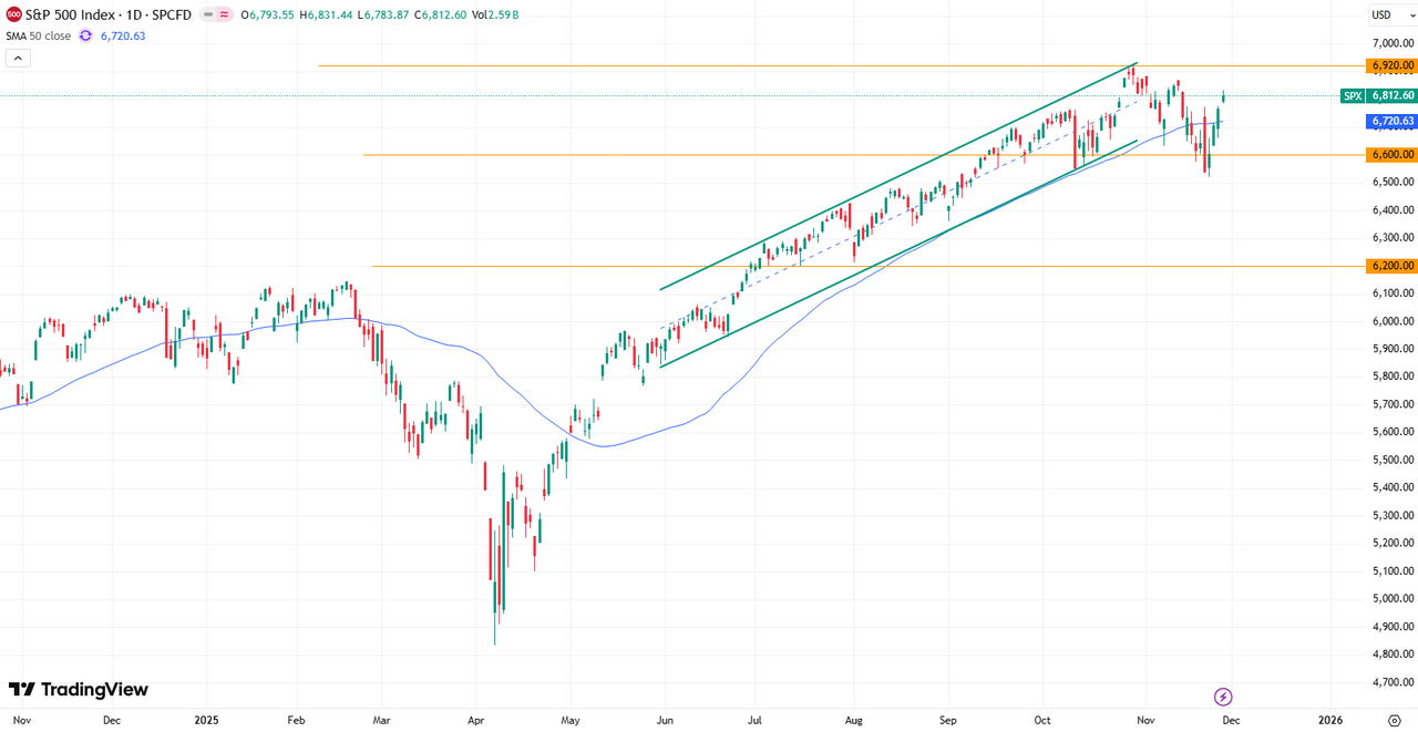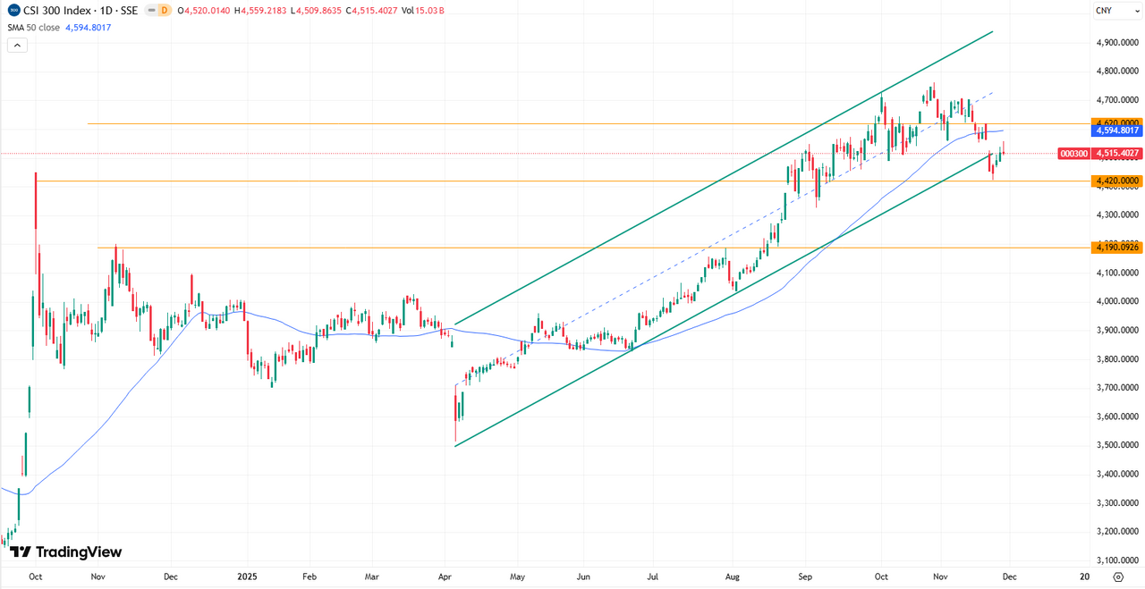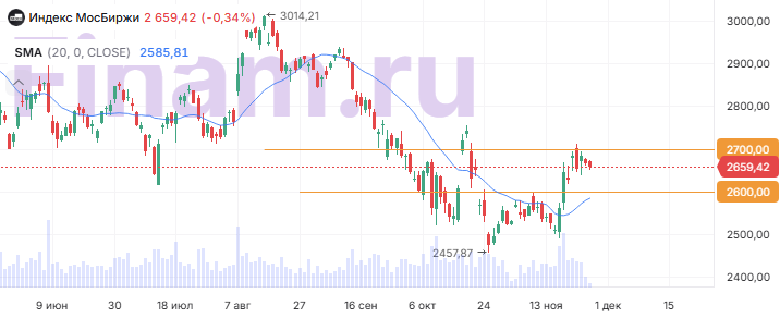 В четверг, 27 ноября, на мировых финансовых рынках сохраняются сдержанные настроения: американские индексы завершили четвертую сессию роста подряд на сильных корпоративных новостях, позитивной макростатистике и ожиданиях скорого снижения ставки ФРС в декабре. На фоне этого Азия продемонстрировала преимущественно положительную динамику благодаря спросу на технологические и сырьевые бумаги, в то время как Европа взяла паузу после ралли и снижается на низких объемах, ожидая новых инфляционных данных и новостей по Украине. Американские фондовые индексы повысились по итогам торгов в среду, продлив рост до четвертой сессии подряд на фоне ожиданий скорого снижения ставки ФРС. Dow Jones вырос на 0,67%, S&P 500 прибавил 0,69%, Nasdaq поднялся на 0,82%. Позитив поддержали данные о снижении заявок на пособие по безработице до минимума с апреля и рост заказов на товары длительного пользования. Американские фондовые индексы завершили торги в среду уверенным ростом, четвертую сессию подряд. Dow Jones вырос на 0,67%, S&P 500 поднялся на 0,69%, Nasdaq прибавил 0,82%. Игроки позитивно встретили свежие отчетности — акции Robinhood взлетели на 10,9% после новостей об участии в сделке по покупке криптобиржи LedgerX. Существенный прирост показали также Dell Technologies (+5,8%) и Autodesk (+2,4%). Среди лидеров роста были и крупные IT-компании: Microsoft (+1,8%), Tesla (+1,7%), Nvidia (+1,4%). В числе аутсайдеров Workday (-7,9%), Deere & Co (-5,7%) и HP (-1,4%). Поддержали настроения и макроданные: число заявок на пособия по безработице снизилось до минимума с апреля (216 тыс. против ожиданий роста до 225 тыс.), а заказы на товары длительного пользования выросли на 0,5% (прогноз +0,3%). По Бежевой книге ФРС экономическая активность за последние недели почти не изменилась, но занятость и спрос на рабочую силу ослабли в половине округов. Вероятность декабрьского снижения ставки ФРС выросла до 85% против 30% неделей ранее. В четверг европейские рынки взяли паузу после трехдневного ралли: STOXX 50 снижается на 0,2%, а STOXX 600 теряет 0,1%. Инвесторы фиксируют прибыль после почти 1% роста днем ранее на волне ожиданий скорого снижения ставки ФРС. Активность на европейских площадках традиционно снижена из-за выходного дня в США (День благодарения), поэтому объемы торгов были низкими. Внимание инвесторов сосредоточено на предстоящих данных по инфляции из крупнейших экономик региона, а также на любых новостях, связанных с возможным прогрессом в мирных инициативах вокруг Украины. Среди аутсайдеров дня идут акции компаний Prosus (–1,7%), ASML Holding (–1,4%) и Rio Tinto (–1,3%). Под давлением оказались технологический и сырьевой сектора на фоне фиксации прибыли и локальной коррекции после ралли предыдущих дней. В плюсе были отдельные истории: Puma взлетела на 14% после сообщения, что китайская Anta Sports и другие компании проявляют интерес к покупке немецкого производителя спортивной одежды. Азиатские фондовые индексы преимущественно росли в среду. Японский Nikkei 225 вырос на 1,22%, Topix — на 0,39%. Рынок поддержало уверенное закрытие Уолл-стрит и ожидания по снижению ставки ФРС в следующем месяце. Наиболее заметно росли бумаги технологических и AI-компаний (SoftBank Group, Kioxia, Fujikura, Advantest, Lasertec +0,4% до +7,9%), а также акции компаний потребительского и финансового секторов. Дополнительный стимул рынку придает обсуждение масштабных новых программ поддержки в Японии. В Китае динамика была разнонаправленной: Shanghai Composite вырос на 