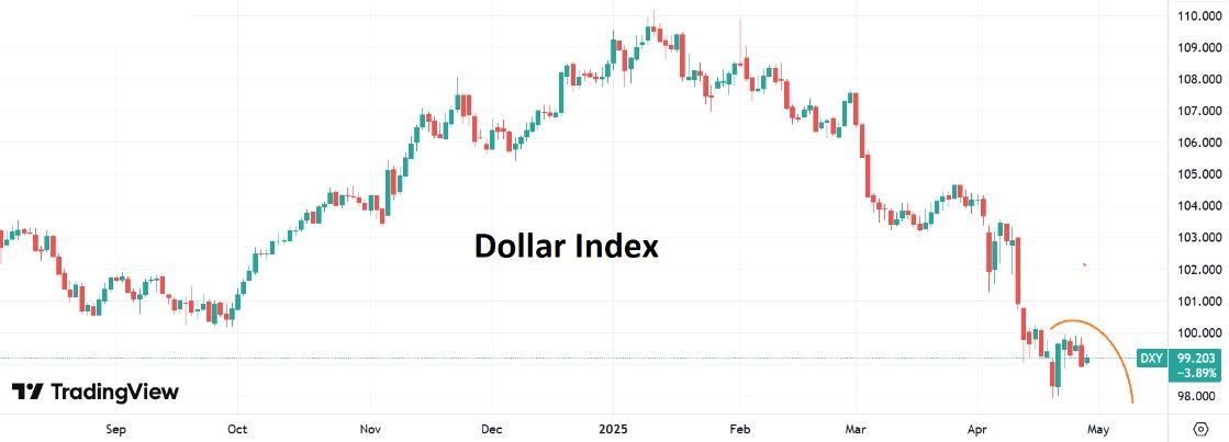 Индекс доллара в понедельник просел на 0,67%. Но утром во вторник он поднимается на 0,2%, торгуясь на 99,17. Эти ценовые изменения не меняют общей картины рынка – в конце месяца валютный рынок консолидируется на достигнутых уровнях в ожиданиях прихода важных новостей и статистики. Курс евро на прошлой неделе получил поддержку на 1,131 и сейчас опять смотрит вверх, дожидаясь сильного закрытия апреля. Пара USD/JPY вчера просела на 1,0%, сводя на нет ослабление иены в конце прошлой недели. За последние две недели иена консолидируется в диапазоне 140,0-144,0. Китайский юань сегодня укрепился на 0,36% до 7,267 к доллару. Курс доллара в конце месяца не находит в себе сил для восстановления, которое ранее было вызвано сохраняющейся неопределенностью относительно развития торговли между США и Китаем. Покупать доллар по факту слабого закрытия месяца тоже не слишком оправданно. Пока нет новостей, которые могли бы повлиять на валютный рынок. Данные по занятости в США и динамике ВВП окажутся в центре внимания в конце недели. Ранее чиновники ФРС, включая председателя Дж. Пауэлла, заявили, что готовы снизить процентные ставки, если станет ясно, что существуют риски для роста экономики или в случае ухудшения ситуации на рынке труда США. В этой связи особый интерес для инвесторов представляют апрельские данные по занятости, которые должны быть опубликованы в пятницу. А пока мы видим, что американский рынок акций растет пятую сессию подряд на ожиданиях того, что Д. Трамп намерен смягчить влияние своих автомобильных пошлин. Накануне Wall Street Journal сообщил о смягчении пошлин на иностранные автомобили и импортные автозапчасти. Теперь американские компании, платящие 25% пошлины на импортные автомобили, не должны будут платить дополнительные пошлины, например, на сталь и алюминий. Это дает надежды на дальнейшее снижение торговой напряженности и дальнейшие шаги по улучшению ситуации в реальной экономике. Министр финансов США Скотт Бессент в понедельник заявил, что многие из ведущих торговых партнеров США сделали «очень хорошие» тарифные предложения, добавив, что недавние шаги Китая по освобождению некоторых товаров США от ответных тарифов продемонстрировали готовность к деэскалации торговой напряженности между двумя крупнейшими экономиками мира. Однако мы все уже привыкли, что Д. Трамп и его команда очень часто на прессу выдают желаемое за действительное, а по факту выясняется, что все не так позитивно. Большинство из 300 экономистов, опрошенных агентством Reuters, считает, что высоки риски того, что мировая экономика в этом году скатится в рецессию. Некоторые из них отметили, что тарифы президента США Дональда Трампа нанесли ущерб деловым настроениям. Что касается Европы, то здесь курс единой валюты активно растет три месяца подряд. Причем подъем в апреле (+5,38%) стал максимальным за последние 5 лет. Это означает, что в мае мы можем увидеть «довесок» этого роста и курс евро может подняться в район 1,16. В понедельник глава центрального банка Финляндии и член правления ЕЦБ Олли Рен заявил, что Европейский Центральный Банк может снизить процентные ставки ниже нейтрального уровня, который поддерживает экономику в равновесии. Банкир добавил, что инфляция в еврозоне может оказаться ниже ожидаемой из-за тарифов США. В такой ситуации у евро в мае вероятно не будет возможности показ