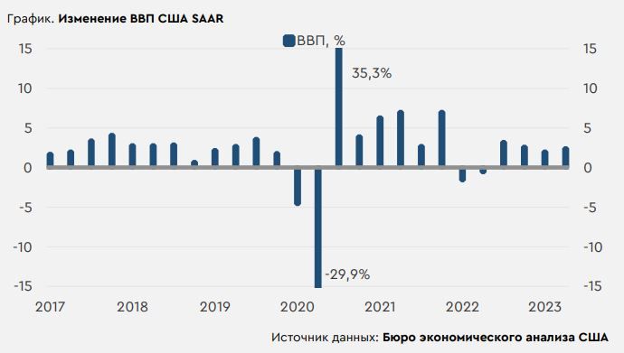 В центре внимания. В четверг на мировом рынке спрос на рисковые активы ослабился. Настроения ухудшились на фоне вышедшей вчера экономической статистики в США, которая была неожиданно сильной. В результате в глазах инвесторов вероятность дальнейшего повышения ставки ФРС выросла. ЕЦБ вчера, как и американский регулятор днем ранее, повысил ставку на 25 б.п. и не дал инвесторам явно направленных сигналов о дальнейших действиях, что также способствовало ослаблению евро. В России вчерашний день отметился ростом фондового рынка к очередным максимумам более чем за год - индекс МосБиржи пытается превысить отметку в 3000 п. Сегодня на динамику глобального рынка могут повлиять дальнейшие события сезона отчетностей, а июньская статистика по ценовому индексу PCE, который таргетирует ФРС, вряд ли удивит инвесторов – вчерашние квартальные данные уже указывают на возможную динамику показателя в июне. На евро сегодня отдельный эффект способны оказать июльские данные по инфляции в Германии, важные в преддверии выхода статистики по всей еврозоне в понедельник. На российский рынок сегодня могут влиять новости с форума Россия-Африка. Нефть и рубль. Нефтяные цены вчера заметно выросли даже на фоне укреплявшегося в мире доллара. Сегодня фьючерсы Brent торгуются у $84,1/барр. Помимо традиционных недельных данных по числу буровых установок в США, сегодня на динамику котировок повлияет ценовая статистика в Германии. Если она вызовет заметное укрепление доллара относительно евро, фьючерсы Brent могут опуститься к $83/барр. Рубль в четверг перешел к ослаблению по мере приближения к окончанию налогового периода. Дополнительное давление на российскую валюту могло оказывать вчерашнее укрепление доллара на глобальном рынке после публикации сильной экономической статистики в США. Сегодня курс USDRUB находится у 90,7 руб./$. Другие курсы валют EM с утра двигаются разнонаправленно. Сегодня рубль окончательно потеряет поддержку фактора налогового периода, и риски роста курса USDRUB выше 91 руб./$ вновь усиливаются. Экономическая статистика в США. Вчерашние данные напомнили о все еще сильном состоянии американской экономики. Так, сезонно-скорректированный рост ВВП страны во втором квартале в аннуализированном выражении ускорился с 2% до 2,4% (прогноз 1,8%), чему способствовал заметный рост инвестиций. Вчерашняя статистика указала также на увеличение темпов роста заказов товаров длительного пользования сразу на 2,7 п.п. до 4,7% м/м (прогноз 1% м/м), максимумов с середины 2020 года. Наконец, публикуемые вчера данные свидетельствовали о снижении недельных обращений за пособиями по безработице в США до минимума с начала марта, что напоминает о перегретом рынке труда. В результате экономическая статистика увеличивает вероятность еще одного повышения ставки ФРС на сентябрьском заседании регулятора, что негативно сказывается на рисковых активах в мире.