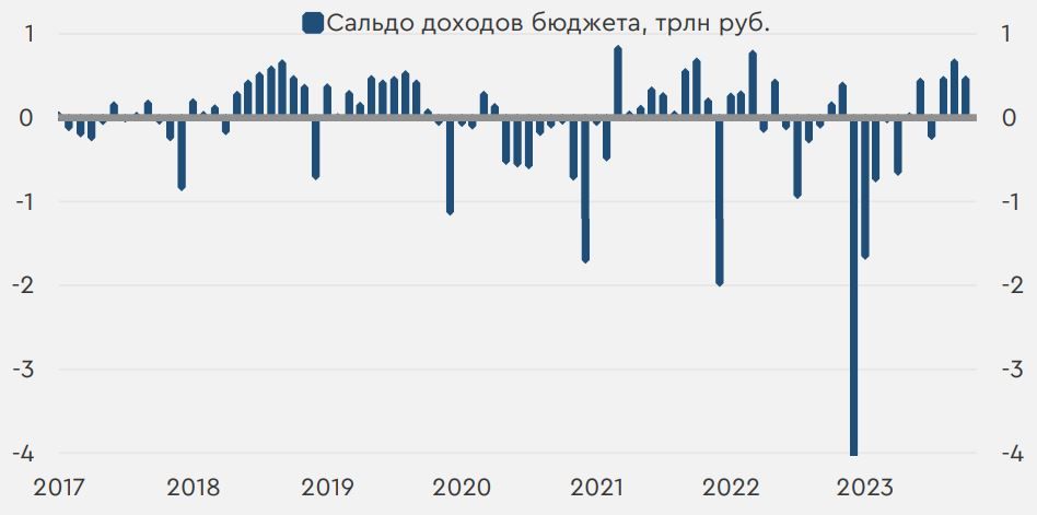 Накопленным итогом дефицит федерального бюджета РФ сократился уже до 1,2 трлн руб. и 0,7% ВВП. В последние месяцы года традиционно исполняется существенная часть бюджетных расходов, и дефицит федерального бюджета еще должен будет вырасти. Тем не менее он вряд ли существенно превысит 3,2 трлн руб. по итогам текущего года.