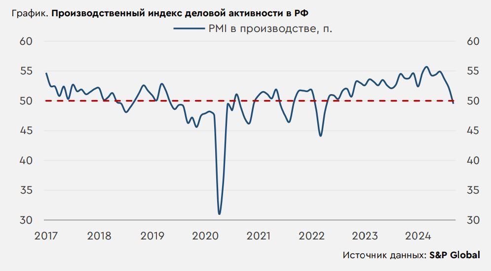 В центре внимания. В понедельник на глобальном рынке спрос на рисковые активы умеренно усилился. Глава ФРС вчера отметил сильное состояние американской экономики, на фоне которого регулятор США, по заявлениям Джерома Пауэлла, вряд ли вновь снизит ставку сразу на 50 б.п. на ближайшем, ноябрьском, заседании. В РФ в понедельник был опубликован полный проект федерального бюджета, детали которого указали на планы по индексации тарифов ЖКХ в следующем году сразу на 11,9%. В прошлых проектировках тарифы предлагалось повысить лишь на 5,7%, и такие планы дополнительно усложняют для Банка России процесс достижения цели по инфляции. В результате регулятор получил дополнительные аргументы для дальнейшего повышения ставки. Инвесторы сегодня обратят внимание на оценки инфляции в еврозоне за сентябрь, которые позволят лучше оценить дальнейшие действия ЕЦБ и, соответственно, траекторию евро. На динамику мирового рынка также может повлиять публикация августовской статистики по числу открытых в США вакансий. Рынок РФ сегодня будет отыгрывать утренние данные, показавшие падение производственного индекса деловой активности до минимума с апреля 2022 года, а также анонс параметров первого в этом квартале аукциона по размещению ОФЗ. Нефть и рубль. Вчера цены на нефть слабо подросли. Поддержку котировкам продолжают оказывать геополитические новости. Сегодня фьючерсы Brent торгуются у $71,1/барр. Вечером вторника выйдут традиционные недельные оценки по запасам в США от API. Если они вновь укажут на существенное сокращение запасов, цены на нефть попробуют задержаться выше $71/барр. Рубль в понедельник, по официальным курсам ЦБ, ослабился против основных валют. При этом на МосБирже курс CNYRUB снизился по итогам дня, уходя в моменте к 13,18 руб./юань. Сегодня он находится у 13,24 руб./юань. Другие курсы валют EM с утра двигаются разнонаправленно. Сейчас налоговый период официально завершился, и остаток недели курс, вероятно, проведет выше 13,2 руб./юань. Деловая активность в России. Сегодняшние данные за сентябрь неожиданно показали падение производственного индекса PMI в РФ сразу на 2,6 п. до 49,5 п. В результате показатель не только ушел в зону ниже 50 п., что указывает на снижение деловой активности в производстве, но и обновил минимум с апреля 2022 года. С одной стороны, составляющие индекса указали на первое более чем за два года снижение новых заказов из-за возможного ослабления спроса, а также на максимальное с октября 2022 года сокращение занятости. С другой же стороны, бизнес отчитался об усилившемся росте издержек, на фоне которого темпы роста отпускных цен были максимальными практически за год. Такое охлаждение экономики нельзя назвать дезинфляционным, что, как отмечал ЦБ, будет лишь вести к дальнейшему давлению на цены через более низкое предложение. В таких условиях регулятор вряд ли сохранит ставку на прежних уровнях на заседании 25 октября.