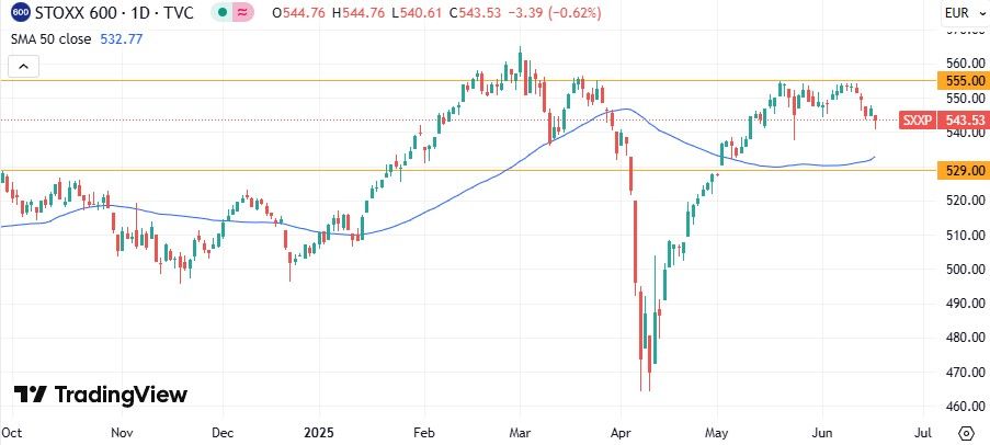 Во вторник, 17 июня, на мировых фондовых рынках наблюдаются преимущественно негативные настроения, инвесторы продолжают следить за противоречивыми новостями о развитии ситуации на Ближнем Востоке. Хотя Израиль и Иран продолжают обмениваться военными ударами, расширения конфликта и вовлечения в него других стран, чего многие опасались, пока не произошло. При этом иранская сторона просигнализировала, что готова возобновить переговоры по ядерной сделке с Штатами, если Израиль прекратит атаки. Между тем президент США Дональд Трамп неожиданно покинул встречу G7 в Канаде и призвал «всех» эвакуироваться из Тегерана, хотя до этого заявлял о своей уверенности в скором урегулировании конфликта. На таком фоне инвесторы предпочли занять выжидательную позицию. Отметим также, что в ближайшие время внимание рынков начнет смещаться на заседание ФРС, итоги которого станут известны в среду вечером. Американский регулятор, как ожидается, оставит неизменной ключевую ставку, при этом наибольший интерес будут представлять комментарии его главы Джерома Пауэлла, а также график прогнозов руководства центробанка по дальнейшей динамике ставки. По данным CME FedWatch Tool, трейдеры по-прежнему ждут двух снижений ставки до конца этого года, первое из которых скорее всего состоится в сентябре. В понедельник основные фондовые индексы США выросли на 0,8-1,5%, при этом лидерами подъема стали бумаги технологических компаний. Однако сегодня фьючерсы на американские индексы торгуются в ощутимом минусе. Биржи Азии завершили торги без единой динамики, при этом японский рынок вырос на результатах заседания ЦБ страны. Банк Японии, как и ожидалось, сохранил ключевую ставку на уровне 0,5% годовых, а также подтвердил планы сокращать покупки японских гособлигаций на 400 млрд иен ($2,8 млрд) ежеквартально по март 2026 г. С заметного снижения началась торговая сессия в Европе. В течение дня инвесторы будут ждать данных по розничным продажам и промпроизводству в США за май, которые позволят уточнить текущее состояние американской экономики Китайский CSI 300 понизился на 0,09%, гонконгский HangSeng– на 0,41%. Фьючерс на S&P 500 просел на 0,51%, доходность 10-летних казначейских облигаций США опустилась на 1 п.п. до 4,44%. Стоимость августовских фьючерсов на нефть Brent поднялась на 1,49% до $74,3 за баррель. Среди корпоративных историй в США наиболее заметным стало решение президента Дональда Трампа одобрить сделку по приобретению United States Steel японской Nippon Steel за $14,9 млрд, что вызвало скачок котировок US Steel на 5,1%. Лидерами роста в индексе Dow Jones стали Goldman Sachs и Nike (+2,3%), а Cisco прибавила 2,2% после улучшения рекомендации аналитиками Deutsche Bank. В то же время. Акции Nvidia (NVDA) подскочили на 2% в понедельник, приблизившись к своему историческому максимуму — бумаги закрылись на отметке $144,69, всего на 3% ниже рекордного значения. Инвесторы продолжают активно покупать Nvidia на фоне высокого спроса на её ИИ-чипы со стороны крупнейших облачных провайдеров и иностранных государств, стремящихся развивать собственные суверенные системы искусственного интеллекта. Акции еще одного производителя чипов AMD (+8,8%) подскочили после того, как аналитики Piper Sandler повысили целевую цену бумаги до $140. Среди аутсайдеров находились компании сектора ВПК – на фоне выросшей уверенности инвесторов в том, что США не будет принимать прямого участия в Ирано