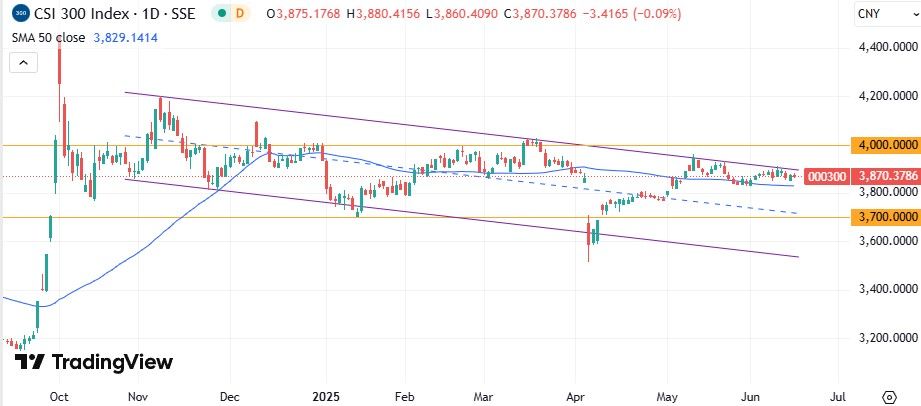 CSI 300. На дневном графике CSI 300 продолжает консолидироваться между верхней границей среднесрочного нисходящего канала и 50-дневной скользящей средней. Если индексу удастся выйти из фигуры наверх, первой целью дальнейшего повышения станет уровень 4000 пунктов.