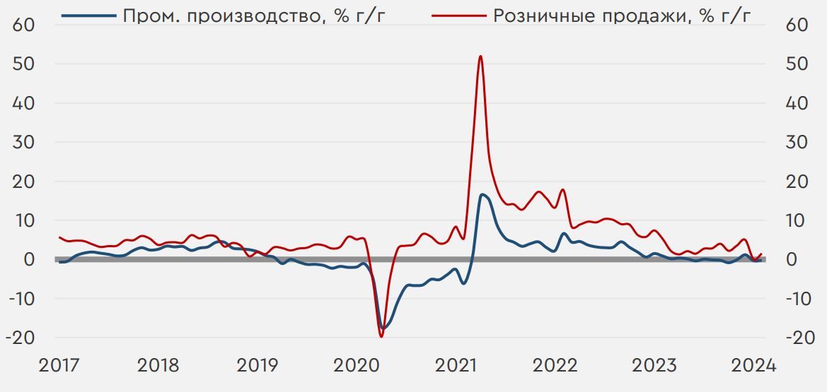 Опубликованные в четверг данные указывали, что в феврале розничные продажи в США выросли лишь на 0,6% м/м (прогноз 0,8% м/м), отражая некоторое ослабление потребительского спроса. Пятничная статистика свидетельствовало о слабой ситуации и в американской промышленности. С одной стороны, в феврале промышленное производство страны увеличилось впервые за три месяца, прибавив 0,1% м/м (прогноз 0% м/м). С другой же стороны, январская динамика была пересмотрена с -0,1% м/м до -0,5% м/м. В результате производство в США два последних месяца снижается в годовом выражении. ФРС может придерживаться более мягкой позиции из-за рисков рецессии, и последняя статистика сдерживает падение рисковых активов.