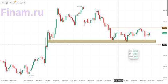 В пятницу, 29 августа, рынок завершает основную сессию в «красной зоне». Индекс МосБиржи падает на 0,47% до 2899,07 пункта, долларовый Индекс РТС снижается на 0,52% до 1136,95 п. В пятницу российский фондовый рынок демонстрирует снижение на фоне возросших сомнений в скором достижении мирного соглашения по конфликту на Украине. На прошедшей неделе российский фондовый рынок находился под влиянием публикации полугодовых отчетов, которые в целом оправдали ожидания аналитиков. «Лукойл» объявил о выкупе более 10% акций с рынка, что вызвало их кратковременный рост на 5%. Также позитивно была воспринята новость о включении акций «ИКС 5» в Индекс МосБиржи. Несмотря на отдельные позитивные новости, общая динамика осталась сдержанной. В преддверии заседания Банка России внимание участников рынка смещается на прогнозы по ключевой ставке и пресс-конференцию ЦБ 2 сентября. Лидерами роста фондового рынка стали «Самолет» (+2,91%), «Лукойл» (+2,34%), СПБ Биржа (+2,21%), ТМК (+1,88%), «Газпром» (+1,73%). Между тем в минусе финишировали бумаги «Сегежи Групп» (-3,72%), «Селигдара» (-3,94%), «Алросы» (-1,45%), «Мосэнерго» (-1,43%). «Аэрофлот» объявил финансовые результаты по МСФО за 6 месяцев 2025 г. Выручка составила 414,8 млрд руб. (+10% (г/г)), скорр. EBITDA – 82,8 млрд руб. (-29% (г/г)), скорректированная прибыль – 4,3 млрд руб. (-84% (г/г)). Акции компании падают на 0,18%. «Сургутнефтегаз» опубликовал финансовые результаты по РСБУ за I полугодие и II 2025 г. Чистый убыток компании в I полугодии 2025 г. составил 452,727 млрд руб. против прибыли в 139,887 млрд руб. годом ранее. Остальные финансовые показатели за отчетный период не раскрываются. Привилегированные акции падают на 0,18%, а обыкновенные акции растут на 0,13%. «Транснефть» опубликовала финансовые результаты за I полугодие 2025 г. по МСФО. Прибыль составила 153 млрд руб. (-10% (г/г)). Выручка в отчетном полугодии достигла 720 млрд руб., практически не изменившись в годовом выражении. Акции растут на 1,11%. «Россети» опубликовали финансовые результаты по МСФО за I полугодие 2025 г. Прибыль составила 121,28 млрд руб. (+37,2% (г/г)). EBITDA достигла 300,13 млрд руб. (+24,2% (г/г)). Акции растут на 1,27%. Совет директоров «Озон Фармацевтики» рекомендовал выплатить 0,25 руб. на акцию в качестве дивидендов за I полугодие 2025 г. (дивидендная доходность 0,44%), акции компании снижаются на 4,21%. Инвесторам, интересующимся российским рынком акций, мы по традиции рекомендуем обратить внимание на стратегию «RU. Капитал и дивиденды». Технический анализ Индекс МосБиржи Индекс МосБиржи на 4-часовом таймфрейме ушел в проторговку. Цена несколько раз протестировала зону поддержки в 2858-2870,6 п. Сейчас котировки могут подняться до уровня сопротивления в 2923 п.