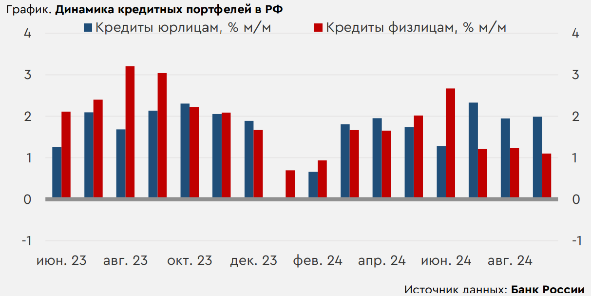 В центре внимания. В мире на прошлой неделе превалировали позитивные настроения. Инвесторы отыгрывали события стартовавшего сезона отчетностей, неплохую статистику из Китая и итоги заседания ЕЦБ, на котором регулятор продолжил цикл смягчения ДКП. В России на прошлой неделе вышел целый ряд статистики. В частности, октябрьские цифры показали продолжившееся увеличение ценовых ожиданий бизнеса и рост инфляционных ожиданий россиян до максимума с декабря. Пятничные данные также указали на сохранение в сентябре высоких темпов кредитования. Текущая неделя на глобальном рынке отметится публикацией октябрьских индексов деловой активности в развитых странах. Инвесторы также будут отыгрывать итоги заседания ряда регуляторов. На рынке РФ главным событием недели, несомненно, будет заседание ЦБ РФ. На нем регулятор должен повысить ставку как минимум до 20% годовых, при этом очень высокой видится вероятность повышения сразу до 21% годовых. На заседании Банк России также представит свои обновленные прогнозы, в которых ожидаемые среднегодовые уровни по ставке на ближайшие годы могут быть существенно повышены. Нефть и рубль. Нефтяные цены на предыдущей неделе заметно снизились. Давление на котировки оказали сообщения СМИ о низкой вероятности ударов по нефтяным объектам на Ближнем Востоке и месячный отчет ОПЕК, в котором вновь были снижены прогнозы по спросу. Еще более сильное снижение цен ограничивалось сильной статистикой из Китая и неожиданным недельным снижением нефтяных запасов в США. Сегодня фьючерсы Brent торгуются у $73,6/барр. Если индексы PMI не преподнесут инвесторам неприятных сюрпризов, котировки могут восстановиться к уровням выше $74/барр. По итогам прошлой недели рубль укрепился, сильнее всего – в пятницу. Снизившийся спрос со стороны нерезидентов и приближающийся налоговый период способствовали коррекционному укреплению рубля. Сегодня курс CNYRUB находится у 13,37 руб./юань. Другие валюты EM с утра преимущественно слабеют. Формально очередное повышение ключевой ставки также играет на стороне рубля, но вряд ли оно значимо повлияет на курс в краткосрочной перспективе. В текущих условиях курс попробует закрепиться ниже 13,5 руб./юань. Статистика по банковскому сектору России. Сентябрьские данные показали замедление кредитования физических лиц с 1,2% лишь до 1,1% м/м. Темпы роста выдач ипотеки остались у 0,9% м/м, автокредитование ускорилось с 4,5% до 5,2% м/м на фоне ожиданий введения утильсбора, а выдачи потребкредитов замедлились с 1,3% до 0,7% м/м под влиянием макропруденциального ужесточения. С другой стороны, темпы роста кредитного портфеля юридических лиц в сентябре увеличились на 0,1 п.п. до 2% м/м. Это происходило даже на фоне слабого спроса на займы со стороны застройщиков. Рост средств физических лиц в банках не ускорился, его темпы остались у 1,3% м/м несмотря на ускорившийся рост депозитных ставок. В результате банковская статистика не является аргументом для более мягких действий со стороны ЦБ на заседании в эту пятницу.
