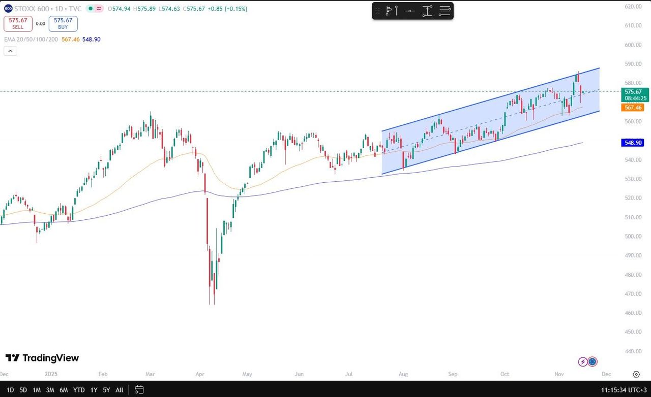 Американские фондовые индексы завершили пятницу разнонаправленно. По итогам пятницы S&P 500 снизился на 0,05% до уровня в 6734,11 п. Nasdaq Composite увеличился на 0,13% до 22 900,59 п. Dow Jones Industrial Average упал на 0,65% до 47 147,48 п. Фьючерсы на американские индексы в понедельник утром демонстрируют умеренный рост. Рынок выходит из периода повышенной волатильности, обусловленной завершением шатдауна в США, коррекцией в технологическом секторе и переоценкой ожиданий относительно темпов смягчения денежно-кредитной политики ФРС. На прошлой неделе давление на Nasdaq Composite усилилось вследствие снижения спроса на акции ведущих технологических компаний, таких как Alphabet, Amazon, Broadcom и Meta (признана экстремистской организацией и запрещена на территории РФ). В фокусе участников также остается корпоративная отчетность: на этой неделе внимание будет приковано к Nvidia, традиционно оказывающей существенное влияние на динамику акций компаний из сегмента искусственного интеллекта. Инвесторы также ждут ключевой отчет по рынку труда, который станет первым официальным отчетом после завершения шатдауна. В четверг выйдет запоздавший отчет по занятости за сентябрь — важный ориентир на фоне осторожных комментариев членов ФРС, которые уже ставят под сомнение декабрьское снижение ставки. Европейский индекс STOXX 600 сегодня демонстрирует снижение на 1,01% до 574,81 п. В третьем квартале 2025 года ВВП еврозоны вырос на 0,2% (к/к) и на 1,4% (г/г), что совпало с предварительными оценками, тогда как экономика ЕС прибавила 0,3% (к/к) и 1,6% (г/г). Занятость также продолжила увеличиваться: в еврозоне +0,1% (к/к) и +0,5% (г/г), в ЕС — +0,2% (к/к) и +0,6% (г/г). Капитализация Siemens Energy растет на 1,22% после того, как компания завершила IV квартал 2025 г. финансового года с чистой прибылью и сообщила о росте выручки на 7% (г/г). Рынки акций Азиатско-Тихоокеанского региона демонстрируют снижение на фоне обострения отношений между Китаем и Японией. Напряженность усилилась после заявления японского премьер-министра о том, что возможное нападение Китая на Тайвань может рассматриваться как угроза национальной безопасности Японии и привести к ответным действиям. Китай резко раскритиковал эту позицию, обвинил Токио в нарушении международных норм и принципа «одного Китая». Пекин потребовал от Японии отказаться от подобных высказываний и предупредил о последствиях в случае дальнейшего обострения. Китайский индекс CSI 300 падает на 0,65% до 4598,05 пункта. Японский индекс Nikkei снижается на 0,1% до 50 323,91 п. Экономика Японии в III квартале сократилась на 0,4% (кв/кв) — первое снижение более чем за год и лучше ожидаемого прогноза (-0,6%). Потребительские расходы выросли на 0,1%, госрасходы — на 0,5%, а инвестиции бизнеса ускорились до 1%, показав лучшую динамику за пять кварталов. При этом экспорт снизился на 1,2% после предыдущего роста, а импорт практически не изменился, опустившись на 0,1%. В годовом выражении ВВП упал на 1,8% после пересмотренного роста на 2,3% во II квартале. Сегодня Индекс МосБиржи начинает неделю снижением: котировки падают на 0,39% до 2516,08 п. главным образом под давлением акций «Лукойла», снижающихся на 3,75% из-за сохраняющейся неопределенности с продажей зарубежных активов. Ключевым фактором остается геополитика — отсутствие прогресса в переговорах усиливает осторожность участников. Президент США Дональд Трамп 16 ноября заявил, что республиканцы готовят за
