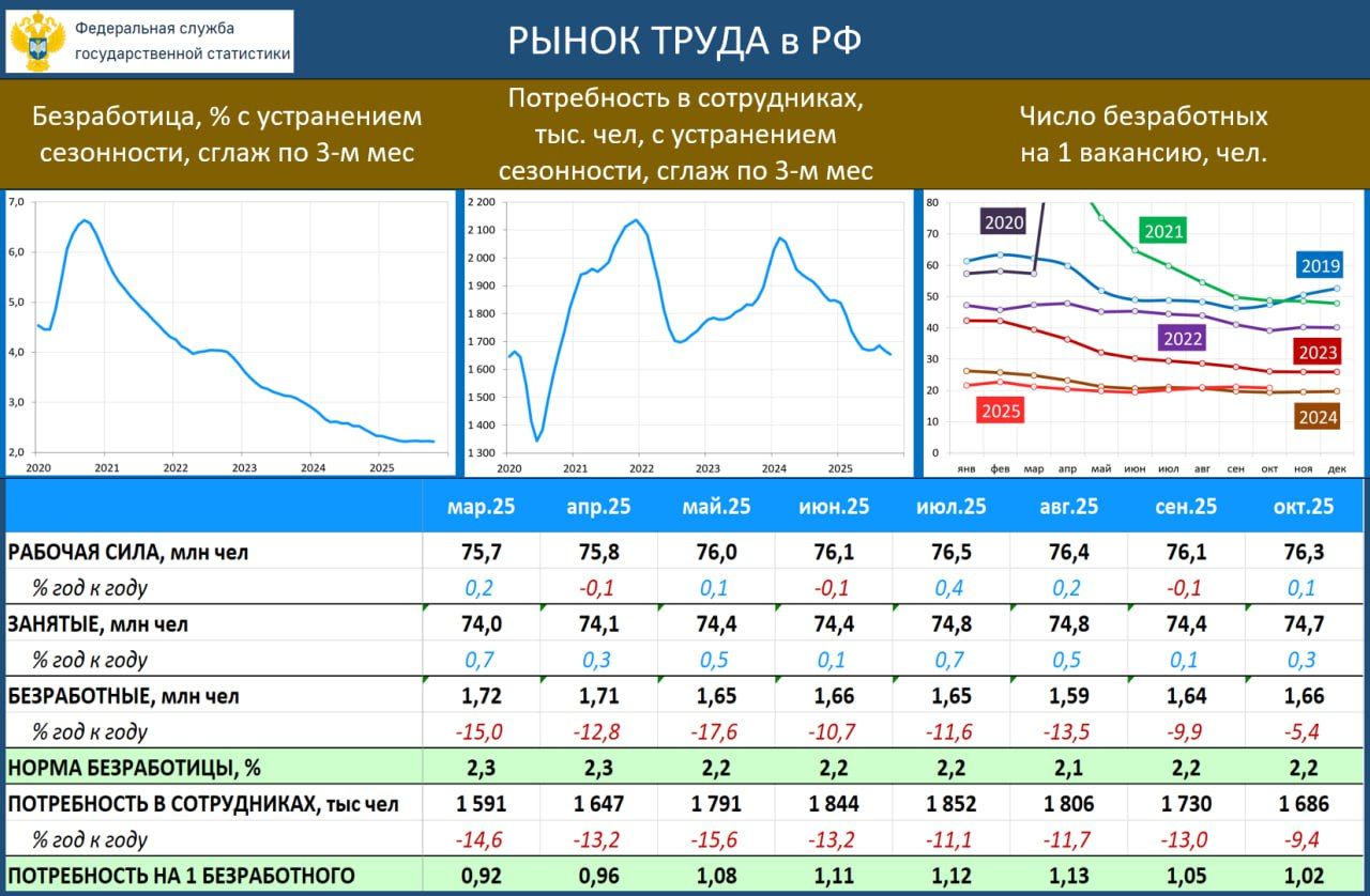 - Норма безработицы замерла на 2.2%, но спрос на труд плавно снижается. В целом статистика по рынку труда говорит, что мы движемся в правильном направлении, но охлаждение идёт очень медленно. Поэтому ЦБ, возможно, и имеет смысл взять паузу на декабрьском заседании.