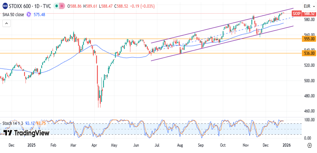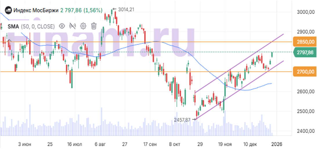 В понедельник, 29 декабря, на мировых фондовых площадках наблюдаются консолидационные настроения, с преобладанием небольшой негативной составляющей, после заметного повышения на прошлой неделе. При этом ведущие индексы остаются недалеко от исторических максимумов. Инвесторы в последние дни положительно воспринимали в целом неплохие статданные из Штатов, указавшие на устойчивость американской экономики и рынка труда страны. И хотя эти данные повышают вероятность паузы в цикле смягчения монетарной политики Федрезерва в следующем месяце, трейдеры, по данным CME FedWatch, по-прежнему рассчитывают на два снижения ключевой ставки ФРС в 2026 г., тогда как последний прогноз самого американского регулятора предусматривает лишь одно снижение. Поддержку рынкам также оказывают весьма оптимистичные ожидания на 2026 г. Так, прогнозы большинства ведущих инвестдомов с Уолл-стрит предполагают подъем индекса S&P 500 до 7500-8000 пунктов в следующем году, а среди драйверов называются продолжение бума в сфере ИИ, дальнейший быстрый рост корпоративных прибылей и выплат акционерам, смягчение ДКП ФРС. В пятницу основные фондовые индексы США уменьшились в пределах 0,1%, сегодня фьючерсы на них также торгуются в слабом минусе. Биржи Азии завершили торги умеренным понижением, чему поспособствовали довольно слабые статданные из КНР. Так, совокупная прибыль крупных промкомпаний Китая в январе-ноябре увеличилась лишь на 0,1% (г/г) до 6,63 трлн юаней ($943 млрд), причем в ноябре было зафиксировано падение на 13,1% (г/г), ставшее самым значительным более чем за год. Тем временем в опубликованном протоколе последнего заседания Банка Японии говорится, что руководство ЦБ обсуждало необходимость дальнейшего повышения процентных ставок даже после их увеличения в декабре. С небольшого повышения началась торговая сессия в Европе. В течение дня инвесторы будут ждать публикации данных по незавершенным сделкам по продаже жилья в США за ноябрь, а также декабрьского индекса производственной активности от ФРБ Далласа. По состоянию на 12:00 мск индексы МосБиржи и РТС прибавляли примерно по 1%. Сводный европейский фондовый индикатор Stoxx 600 уменьшился на 0,03%. Китайский CSI 300 снизился на 0,38%, гонконгский Hang Seng — на 0,83%. Фьючерс на S&P 500 просел на 0,19%, доходность 10-летних казначейских облигаций США опустилась на 1 б.п. до 4,11%. Между тем стоимость декабрьских фьючерсов на нефть Brent выросла на 1,07% до $61,3 за баррель. В США в пятницу стоимость акций чипмейкера Nvidia выросла на 1% на сообщениях СМИ о том, что компания покупает активы стартапа Groq, занимающегося разработкой высокопроизводительных ИИ-ускорителей, за $20 млрд. Бумаги производителей драгметаллов Coeur Mining и Freeport-McMoRan подорожали на 2,5% и 2,2%, соответственно, на фоне роста цен на золото и серебро до рекордных максимумов. В то же время котировки акций Apple, входящие в состав стратегии «US. Сбалансированная», уменьшились на 0,2%. На торгах в Гонконге лидерами снижения стали акции оператора казино Sands China (-4,2%), онлайн-платформы здравоохранения Jd Health International (-3,4%), многопрофильного концерна CK Hutchison (-3,3%), горно-добывающей компании Zijin Mining (-3%), производителя бутилированной питьевой воды и напитков Nongfu Spring (-3%), производителя бытовой электроники Haier Smart Home (-3%). Российский фондовый рынок уверенно растет в понедельник, сохраняя позитивную динамику конца прошлой недели. Подд
