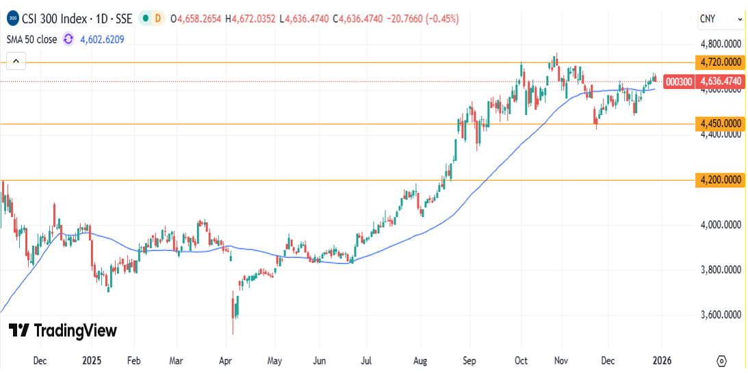 CSI 300 На дневном графике CSI 300, двигаясь в рамках локального горизонтального канала 4450-4720 пунктов, закрепился выше 50-дневной скользящей средней. Это позволяет рассчитывать на продолжение подъема к верхней границе канала.