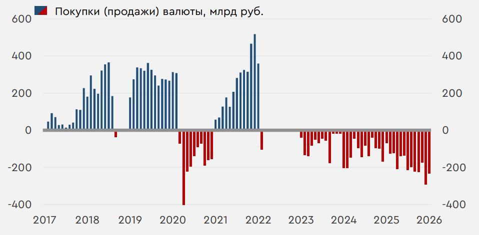 Минфин вчера вечером объявил, что в январе из-за снижения цен на нефть ожидается недобор нефтегазовых доходов в 231,9 млрд руб. относительно базовых уровней. До этого в декабре Минфин прогнозировал недополучение 137,6 млрд руб. Впрочем, фактически полученные доходы были в итоге на 39,8 млрд руб. выше, что требует коррекции через покупки в январе. В итоге Минфин в январе будет продавать валюты на 192,1 млрд руб. или на 12,8 млрд руб./сутки. С учетом нерегулярных операций чистые продажи ЦБ с этой пятницы увеличиваются до 17,42 млрд руб./сутки против декабрьских 14,54 и против 10,22 млрд руб./сутки в первые дни января. В моменте анонс столь значимого увеличения продаж валюты привел к укреплению рубля. Впрочем, по своей сути, продажи по бюджетному правилу нейтральны для курса – они далее просто компенсируются более низким предложением со стороны экспортеров. В результате в дальнейшем рубль должен ослабнуть в рамках коррекции.