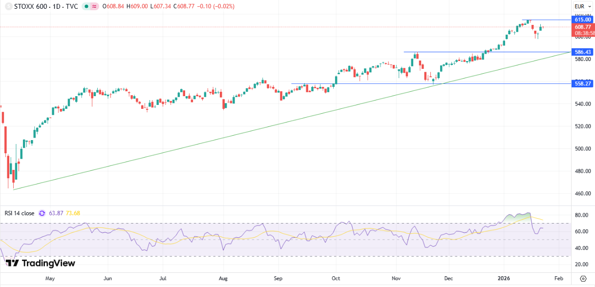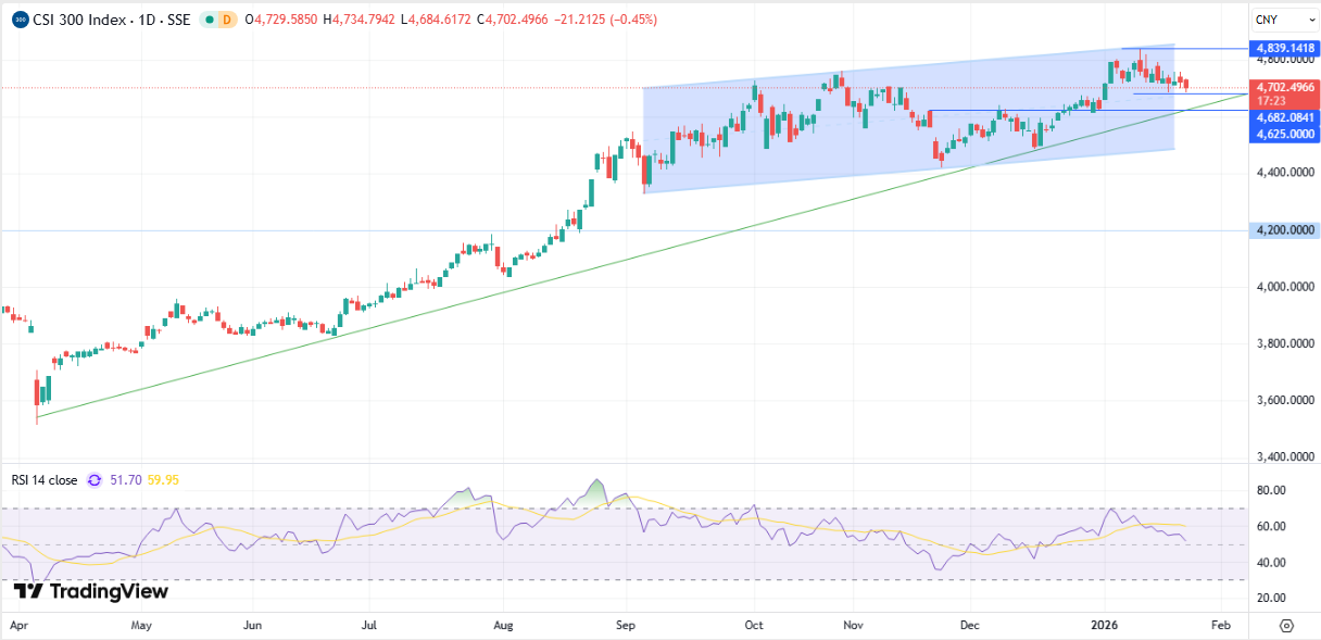 В пятницу, 23 января, мировые индексы находятся преимущественно в «зеленой» зоне. Фондовые рынки получили дополнительную поддержку на Wall Street после того, как президент США Дональд Трамп изменил свою позицию по поводу предложенных тарифов в отношении европейских стран и объявил о рамочном соглашении с НАТО по Гренландии. Накануне основные американские фондовые индексы закончили торги повышением. DJIA прибавил 0,63%, S&P 500 поднялся на 0,55%, а Nasdaq показал рост на 0,91% благодаря ослаблению геополитических рисков и благоприятной макроэкономической статистике. Экономика США в III квартале 2025 г. выросла на 4,4% в годовом исчислении, что оказалось немного выше первоначальной оценки в 4,3% и является самым сильным ростом ВВП с третьего квартала 2023 г. Рост в основном был обусловлен стабильными потребительскими расходами, восстановлением экспорта и увеличением государственных расходов. Акции Critical Metals, имеющей долгосрочную лицензию на разработку крупнейшего месторождения редкоземельных и стратегических металлов Tanbreez в Гренландии, взлетели на 20,89%. АДР Alibaba поднялись на 5,05% после сообщения Bloomberg о том, что китайский гигант электронной коммерции готовится вывести на биржу подразделение по выпуску чипов T-Head. Компания Procter & Gamble (+2,65%) сообщила о чистых продажах за второй квартал в размере $22,21 млрд, что немного ниже консенсус-прогнозов, при этом органический рост выручки также притормозил. Тем не менее прибыль на акцию составила $1,88, оказавшись выше ожиданий в размере $1,86. GE Aerospace опубликовала сильные финансовые результаты за четвертый квартал и весь 2025 г., показав двузначный рост по всем ключевым показателям. Компания заявила о прибыли на акцию в размере $1,57, доходы составили $11,87 млрд. Несмотря на то, что результаты компании превзошли ожидания рынка, акции GE Aerospace упали на 7,38%. Акции Abbott Laboratories, занимающейся производством и продажей товаров для здоровья, обрушились на 10,04% после выхода квартального отчета за четвертый квартал. Прибыль на акцию в размере $1,50 соответствует оценкам аналитиков, в то время как выручка составила $11,46 млрд, что ниже консенсус-прогноза в $11,8 млрд. Акции Tesla выросли на 4,15%. Акции Apple, которые включены в состав стратегии «US. Сбалансированная», повысились в цене на 0,28%. Сегодня, по состоянию на 11:00 мск фьючерс на индекс S&P 500 повышается на 0,12%. Доходность 10-летних казначейских облигаций США опускается на 0,9 б.п. до уровня 4,242%. Фьючерс на нефть марки Brent с поставкой в марте поднимается на 0,56% до $64,42 за баррель. Февральский фьючерс на золото обновил рекорд и растет на 0,70% до $4947,74 за тройскую унцию. Индексы Азиатско-Тихоокеанского региона завершают торги разнонаправленно. Австралийский ASX прибавил 0,13%. Индийский BSE Sensex снижается на 0,6%. Японский Nikkei 225 подрос на 0,35%. Южнокорейский KOSPI поднялся на 0,76%. Гонконгский Hang Seng прибавил 0,41%. Сводный китайский фондовый индекс CSI 300 опустился на 0,45%. Из главных макроэкономических новостей региона. Годовая инфляция в Японии снизилась до 2,1% в декабре 2025 года с 2,9% в предыдущем месяце, достигнув самого низкого уровня с марта 2022 года. Банк Японии на своем первом заседании в 2026 году сохранил ключевую краткосрочную процентную ставку без изменений на уровне 0,75%, поддерживая стоимость заимствований на самом высоком уровне с сентября 1995 года. Предварительная оценка деловой активности в Индии от HSBC в январе показала рост к