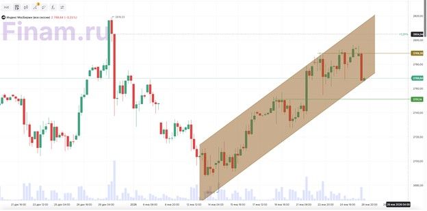 Котировки Индекса МосБиржи протестировали нижнюю границу восходящего канала на 4-часовом таймфрейме. При отскоке таргетом для цены может стать уровень сопротивления в 2789 п. При дальнейшей коррекции, поддержкой — 2751 п.
