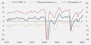 В центре внимания. В понедельник на мировом рынке превалировал умеренный позитив в отсутствии новых принципиально негативных событий в финансовом секторе. Вчерашняя статистика при этом указала на более слабое, чем ожидалось, замедление роста индекса цен производителей в Германии в феврале, а представители ЕЦБ вновь придерживались жесткой риторики, что способствовало умеренному укреплению евро. В России вчера продолжился заметный рост фондового рынка, а ЦБ РФ опубликовал мартовский индикатор бизнес-климата (см. развернутый комментарий). Сегодня инвесторы будут следить за риторикой представителей ЕЦБ, в то время как члены ФРС не выступают из-за «недели тишины». В целом на рынке может наблюдаться разнонаправленная динамика в преддверии завтрашнего раскрытия итогов заседания ФРС. В России в центре внимания останутся новости со встреч президентов РФ и КНР, но вторник отметится и анонсом параметров завтрашнего аукциона ОФЗ. Нефть и рубль. Нефтяные цены вчера в моменте обновляли очередные минимумы с конца 2021 года, но по итогам дня котировки все же смогли вырасти. Поддержку им оказало вчерашнее ослабление доллара. Сегодня, впрочем, доллар вновь укрепляется, и фьючерсы Brent снизились к $73,3/барр. Этим вечером будут опубликованы традиционные недельные данные по запасам от Американского института нефти. Тем не менее в преддверии завтрашнего заседания ФРС котировки могут слабо реагировать на статистику по запасам. Вероятно, фьючерсы Brent будут показывать разнонаправленную динамику до раскрытия итогов заседания американского регулятора завтра вечером. В понедельник рубль двигался в широком диапазоне, несколько ослабившись по итогам дня. Давление на рубль продолжают оказывать упавшие относительно февраля цены на нефть в мире. Сегодня курс USDRUB находится у 77,0 руб./$. Другие валюты EM с утра преимущественно слабеют. Дальнейшую динамику рублю задаст реакция товарного рынка на завтрашние решения ФРС – при существенном восстановлении цен на нефть курс USDRUB может опуститься в сторону 76 руб./$ к концу недели, в том числе на фоне налогового периода. Индикатор бизнес-климата Банка России. Вчерашняя статистика от ЦБ РФ указала на дальнейшее улучшение деловых условий в России. Так, в марте сводный индикатор бизнесклимата вырос на 1,4 п. до 6,9 п., обновив максимум с мая 2021 года. Индекс ожиданий бизнеса за месяц вырос сразу на 1,7 п. до 13,5 п., а оценки текущей ситуации впервые с середины 2021 года вернулись в область положительных значений. Субкомпоненты индикатора при этом указали на постепенное восстановление спроса в стране, в то время как ценовые ожидания предприятий выросли лишь умеренно. В целом данные от ЦБ напоминают о высоких темпах роста деловой активности в РФ, что пока располагает к увеличению ВВП по итогам текущего года. Индикатор бизнес-климата в РФ