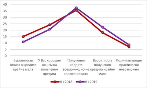 Доля потребителей, которые без каких-либо сложностей могли бы получить потребительские кредиты в банках снизилась за прошедший год более чем на четверть. Так, если по итогам первого полугодия 2018 года доля таких людей среди всех заемщиков составляла 15%, то по итогам аналогичного периода 2019 снизилась до 10,8%. Заемщиков, у которых есть хорошие шансы на получение кредита, также стало меньше, но на чуть более скромную величину: их доля снизилась с 24,3% до 20,7%.