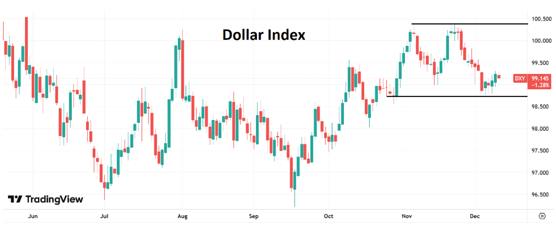 По итогам торгов во вторник индекс доллара смог подняться на 0,2% и в среду утром торги DXY идут возле отметки 99,2. Но в целом, основные мировые валюты остаются в узком диапазоне в преддверии решения ФРС по ставке в эту среду. Пара EUR/USD сегодня находится чуть ниже, чем вчера – в районе 1,163. Курс британского фунта за прошедшие сутки также слегка сдал позиции против доллара и торги GBP/USD идут 1,3310. Курс японской иены за три последних сессии непрерывного ослабления потерял против доллара 1,1% и пара USD/JPY сейчас поднялась до 156,8 – двухнедельный максимум. Только китайский юань продолжает демонстрировать силу: этим утром пара USD/CNY опустилась на новый годовой минимум - 7,061. В среду вечером станут известны итоги двухдневного заседания ФРС. Широко ожидается, что ставка Fed Funds Rate будет снижена стандартным шагом 0,25 п.п. — до 3,5–3,75%. Сегодня как обычно будет опубликован стейтмент (пояснительная записка) регулятора. Поскольку это заседание регулятора опорное, то на нем будет представлен прогноз по основным макропоказателям и ключевой ставке. Позднее вечером пройдет пресс-конференция Дж. Пауэлла. Инвесторов очень будет интересовать ежеквартальный цифровой прогноз членов FOMC по ставке. Сентябрьский прогноз FOMC был достаточно «ястребиным». Согласно оценке ресурса CME FedWatch Tool, до конца следующего года ставка ФРС может быть снижена еще на 0,5–0,75% (то есть на 2-3 снижения по 0,25%) не включая снижения на 0,25% в декабре. Сдвиг в большую сторону по снижению ставки может спровоцировать снижение индекса доллара, но зато это понравится фондовым рынкам. Сдвиг ожиданий по снижению ставки в меньшую сторону негативно отзовется на рынке акций и золота, но зато курс доллара может вырасти. На предыдущем заседании ФРС сообщила, что экономика США развивается умеренными темпами, но сохраняется повышенная неопределенность, связанная с экономическим прогнозом. Согласно данным сервиса GDPNow от ФРБ Атланты, в III квартале ВВП США может вырасти на 3,5% кв/кв. Правда ноябрьские индексы деловой активности ISM в промышленности и сфере услуг не показывают сильной динамики, а рынок труда демонстрирует торможение найма новых сотрудников. Опубликованный вчера индекс оптимизма малого бизнеса NFIB в США вырос в ноябре до 99, что стало самым высоким показателем за 3 месяца, по сравнению с 98,2 в октябре, и оказалось выше прогноза 98,4. Чистый процент владельцев, ожидающих более высоких реальных объемов продаж, вырос до 15%. Между тем, 21% владельцев малого бизнеса назвали качество рабочей силы своей самой важной проблемой. Когда их попросили оценить общее состояние своего бизнеса, 11% назвали его отличным (снижение на 1 п.), а 53% — хорошим (рост на 2 п.). Другие вчерашние данные показали, что согласно исследованию ADP, частные работодатели США в течение четырех недель, закончившихся 22 ноября, создавали в среднем 4750 рабочих мест в неделю, после трех последовательных периодов сокращения. То есть в середине ноября сокращения рабочих мест остановилось. Однако официальный отчет за ноябрь показал сокращение на 32 тыс рабочих мест, что стало крупнейшим месячным сокращением с марта 2023 года. Число увольнений с работы в США сократилось на 187 тыс до 2,941 млн в октябре 2025 года, с 3,128 млн в сентябре и ниже 3,217 млн годом ранее. Это самый низкий уровень с августа 2020 года. Это значит, что рынок труда США пока относительно стабилен. Что кас