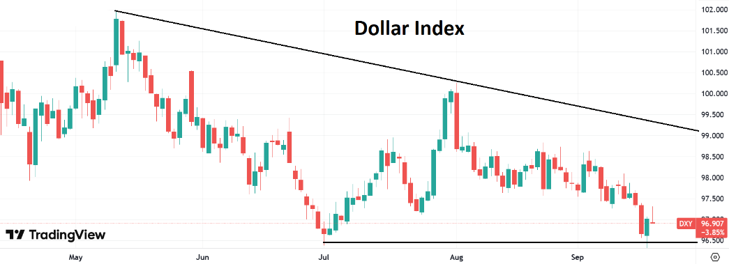 На дневном графике мы видим, что индекс доллара показал ложный пробой годовой поддержки 96,5, кратковременно опустившись до 96,2. Потом было восстановление, которое может продолжится в ближайшие дни.
