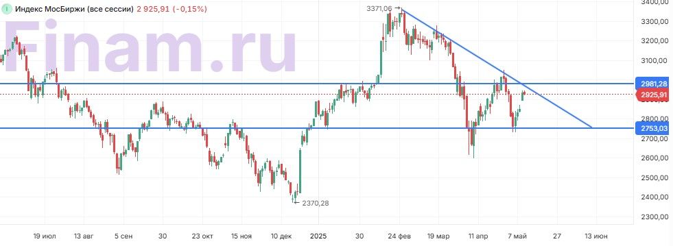 Во вторник, 13 мая, на рынках наблюдается умеренно негативная динамика. Ключевые индексы либо немного корректируются, либо показывают нейтральную динамику. Мировые рынки практически без перерыва отскакивали последние три недели на фоне ожиданий по деэскалации торговых войн между США и Китаем. Теперь временное взаимное снижение пошлин произошло и рынкам нужны новые поводы для роста. Ближайшим важным событием может стать сегодняшняя публикация данных по инфляции в США – показатель, на который ФРС опирается при принятии решений по ставке. Основные фондовые индексы США в понедельник показали заметный рост — Dow Jones вырос на 2,81%, S&P 500 — на 3,26%, а технологический Nasdaq Composite прибавил 4,35%. Сегодня фьючерсы на американские индексы умеренно корректируются после вчерашнего ралли. Европейские индексы торгуются практически нейтрально, в то время как на торгах в Гонконге заметна фиксация прибыли после вчерашнего роста Hang Seng, который был максимальным за два месяца. Сегодня инвесторы будут ждать публикации статистики по инфляции в США за апрель и еженедельных данных от API по запасам сырой нефти в США. По состоянию на 11:45 мск индексы МосБиржи и РТС снижаются на 0,17%. Сводный европейский фондовый индикатор Stoxx 600 подорожал на 0,25%. Китайский CSI 300 вырос на 0,15%, а гонконгский Hang Seng подешевел на 1,87%. Фьючерс на S&P 500 снижается на 0,37%, доходность 10-летних казначейских облигаций США уменьшилась на 1 б.п. до 4,45%. Стоимость июльских фьючерсов на нефть Brent повышается на 0,23% до $65,1 за баррель. Вчера в США лидерами роста были крупные технологические компании, которые, как считают участники рынка, в большей степени выигрывают от деэскалации в торговой войне с Китаем: Texas Instruments (+8,71%), Amazon (+8,07%), Tesla (+6,75%), Apple (+6,17%) и ряд прочих. Акции немецкой химико-фармацевтической Bayer компании раллируют на 9,62% после отчета за I квартал, опередившего ожидания аналитиков как по выручке, так и по прибыли. Немецкая перестраховочная компания Munich Re сообщила о том, что пожары в Калифорнии в начале года стоили ей 800 млн евро, из-за чего прибыль компании за I квартал сократилась на 48% (г/г). Акции Munich Re снижаются на 3,44%. В Гонконге среди лидеров сегодня оказались акции Orient Overseas International (+2,66%), Hansoh Pharmaceutical Group (+1,82%) и Chow Tai Fook Jewellery Group (+1,76%). Хуже рынка торговались акции следующих компаний: Sunny Optical Technology (-7,57%), BYD (-6,98%) и Meituan (-4,98%). Российский рынок в первой половине торгов во вторник показывает практически нейтральную динамику. Инвесторы находятся в ожидании новостей по возможности переговоров между РФ и Украиной в Стамбуле 15 мая. Напомним, что ранее такой формат переговоров предложил Владимир Путин, а Дональд Трамп поддержал инициативу. В то же время президент Украины сообщил, что собирается вести переговоры только лично с Путиным, что добавляет неопределенности. Вероятно, до появления какой-то конкретики по переговорам российские индексы продолжат показывать нейтральную динамику. МФО «Займер» сообщила о росте прибыли по МСФО в I квартале почти в два раза (г/г) до 916 млн руб. Также совет директоров компании рекомендовал выплатить 4,58 руб. на акцию в качестве дивидендов за I квартал, что соответствует 3,0% доходности. Акции «Займера» снижаются на 0,23%. Энергетическая компания ТГК-14 по итогам I квартала увеличила прибыль по РСБУ на 46,6% (г/г) до 588 млн руб. Напомним, что ТГК-14 выплачивает дивиденды именно исходя из показат