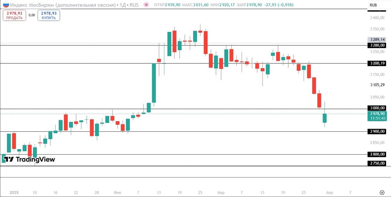 В понедельник, 31 марта, мировые фондовые индексы показывают преимущественно медвежью динамику. Доходы населения США в феврале выросли на 0,8% — это максимальный месячный прирост с января 2023 года, превысив прогнозы аналитиков (0,4%). Расходы увеличились на 0,4%, немного не дотянув до ожидаемых 0,5%. Пересмотренные данные за январь показали, что доходы выросли на 0,7% (вместо 0,9%), а расходы снизились на 0,3%, впервые с марта 2023 года. Базовый индекс PCE (без учета продуктов и энергоносителей) ускорился до 0,4% в месячном выражении и 2,8% в годовом, что выше прогнозов (0,3% и 2,7%). Общий индекс PCE вырос на 0,3% за месяц и 2,5% за год. ФРС учитывает эти данные при оценке инфляционных рисков, что может повлиять на будущие решения по процентным ставкам. На этой неделе главными макроэкономическими событиями в Штатах будет выход следующих данных: Число открытых вакансий по данным отчета JOLTS за февраль (1 апреля); Индекс деловой активности в производственном секторе ISM за март (1 апреля); Количество новых рабочих мест вне с/х сектора за март (4 апреля); Уровень безработицы за март (4 апреля). На корпоративном фронте инвесторы будут следить за отчётностями таких крупных компаний как Constellation Brands A, Conagra Brands, Lamb Weston Holdings и многих других. По состоянию на 12:00 МСК европейский Stoxx 600 снижается на 1,25%, а фьючерс на S&P 500 на 0,88%. Доходность 10-летних казначейских облигаций США снижается на 6 б.п. и составляет 4,193%. Китайский индекс CSI 300 снизился на 0,71%, а гонконгский Hang Seng на 1,31%. Фьючерсы на нефть Brent растут на 0,58%. Индексы Мосбиржи и долларовый РТС снижаются на 1,12%. Lululemon потерял 14,19% на фоне слабых прогнозов, несмотря на сильные квартальные результаты. Компания ожидает замедления роста в текущем финансовом году. Автопроизводители снизились из-за новых пошлин: GM (-1,10%), Tesla (-3,51%) и Ford (-1,82%) реагируют на планы Трампа ввести 25% пошлины на импортные авто, несмотря на локальное производство. US Steel (+3,52%) выросла на слухах о $7 млрд инвестиций от Nippon Steel. Капитализация Apple, чьи акции входят в состав стратегии «US. Сбалансированная», снизилась на 2,66%. PMI промышленности Китая в марте вырос до 50,5 пункта, достигнув годового максимума и совпав с прогнозами аналитиков. Рост показателя (с 50,2 пункта в феврале) подтверждает восстановление производственной активности, поскольку значение выше 50 пунктов указывает на расширение сектора. Лидерами снижения на Гонконгской фондовой бирже выступают акции производителя спортивной продукции Li Ning, подешевевшие на 7,23%, девелопера Longfor - на 5,13%, сети ювелирных магазинов Chow Tai Fook Jewellery Group - на 3,93%, оператора казино Sands China - на 4,53%. Российский рынок начал неделю с продолжения пятничного снижения на фоне возросшей неопределённости в геополитическом вопросе. В середине недели российские власти заявили, что не достигли прогресса в Эр-Рияде после 8-ми часовых переговоров с американской стороной, что послужило поводом для начала коррекции на рынке. На прошедших выходных стали поступать новости о том, что Дональд Трамп не доволен траекторией, по которой движется переговорный процесс, что также стало триггером для снижения рынка на торгах выходного дня. Утренние заявления Трампа, что прогресс достигается медленно, но верно, не воодушевили инвесторов, и снижение продолжилось. В лидерах роста сегодня находится ВУШ (+4,79%), ЭН+ Групп (+4,09%), МКБ (+3,64%). В лидерах падения ДВМП (-3,32%), Фармсинтез (-2,76%), Соллерс (