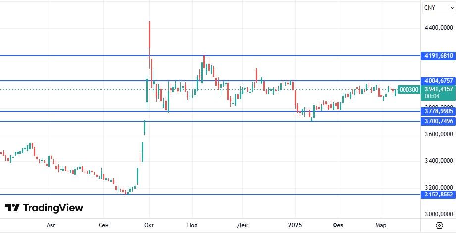 CSI 300. На дневном графике CSI 300 продолжает торговаться в достаточно узком боковике с границами у отметок 4 000 пунктов и 3 770 пунктов. В такой ситуации направление выхода из боковика может задать вектор для краткосрочного движения.