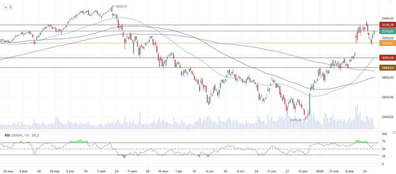 В среду, 5 марта, на мировых рынках преобладает позитивная динамика. Основные американские биржевые индексы завершили вчерашнюю торговую сессию снижением: S&P 500 опустился на 1,22% до 5 778,15 пункта, Dow Jones Industrial Average упал на 1,55% до 42 520,99 пункта, а Nasdaq Composite ослаб на 0,35% до 18 285,16 пункта. Ключевым негативным фактором для рынка стало введение 25%-ных американских пошлин на весь импорт из Канады и Мексики. Кроме того, президент Трамп объявил о повышении пошлин на китайские товары с 10% до 20%. В ответ Китай заявил о введении тарифов в размере 10–15% на американскую сельскохозяйственную продукцию, а власти Канады планируют обложить 25%-ными пошлинами товары из США на сумму около $20,6 млрд. Вчера также состоялось первое выступление Дональда Трампа перед Конгрессом в его текущий президентский срок. Президент США заявил, что введенные пошлины принесут стране триллионы долларов, подтвердил намерение вернуть США контроль над Панамским каналом, а также выразил надежду, что продажа «золотых карт» поможет сократить госдолг. Кроме того, Трамп анонсировал строительство крупного газопровода на Аляске и пообещал принять решение о расширении добычи редкоземельных металлов в США. Американские автопроизводители могут оказаться в числе наиболее пострадавших от торговых войн Трампа, что уже отразилось в снижении их котировок. Капитализация General Motors упала на 4,6%, а акции Ford Motor подешевели на 2,9%. По некоторым оценкам, введение тарифов может увеличить ежегодные издержки американских автопроизводителей на $61 млрд. Тем временем акции Tesla снизились на 4,4% на фоне сокращения февральских продаж электромобилей компании, произведенных в Китае, на 50%. Торги на азиатских фондовых площадках сегодня прошли позитивно: японский Topix вырос на 0,30%, корейский KOSPI — на 1,16%, китайский CSI 300 укрепился на 0,47%, а гонконгский Hang Seng подскочил на 2,85%. Инвесторы продолжают следить за ходом «Двух сессий» в Пекине, рассчитывая на новые меры поддержки китайской экономики. Сегодня китайские власти подтвердили цель по росту ВВП в 2025 году на уровне 5%. Кроме того, было объявлено о намерении проводить умеренное смягчение денежно-кредитной политики. Акции CK Hutchison Holdings взлетели на 21,9% после сообщений о продаже портовых активов американскому консорциуму с участием BlackRock. В сделку вошли, в том числе, два порта в Панамском канале. Европейский фондовый рынок начал восстановление после вчерашнего снижения: индекс STOXX 600 прибавил 1,18%. Выручка Adidas в четвертом квартале 2024 года выросла на 19%, превзойдя ожидания аналитиков. Однако руководство компании предупредило о возможном замедлении роста продаж в 2025 году, что привело к снижению акций производителя спортивной одежды на 2,7%. Выручка Bayer в четвертом квартале снизилась на 1,1%, а чистый убыток концерна составил 355 млн евро против 1,34 млрд евро чистой прибыли годом ранее. Несмотря на это, акции компании выросли на 3,9%. Фьючерсы на нефть марки Brent подешевели на 0,4% до $70,8 за баррель. Доходность 10-летних казначейских облигаций США составляет 4,23% (+2 б. п.). Инвесторам, интересующимся глобальным рынком акций, рекомендуем стратегию Global. И целого мира мало. Российский рынок сегодня утром продолжил рост на фоне сохраняющихся надежд на относительно скорое урегулирование украинского конфликта. Индекс МосБиржи вырос на 0,9% до 3 271,26 пункта. Выручка «Полюса» за 2024 год увеличилась на 40% до $7