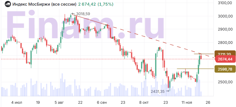 В пятницу, 21 ноября, мировые фондовые индексы окрасились в красные тона вслед за Wall Street, где возобладали опасения по поводу «пузыря» искусственного интеллекта, а более сильный, чем ожидалось, рост занятости в США укрепил ожидания того, что Федеральная резервная система воздержится от снижения процентных ставок в декабре. Накануне торги в США развивались драматично. Начавшись с заметного роста, когда DJIA прибавлял более 1,3%, а Nasdaq более 2%, рынок развернулся и ушел в минус, завершившись резким падением основных фондовых индексов. К закрытию рынка DJIA потерял 0,84%, S&P 500 опустился на 1,56%, а Nasdaq упал на 2,15% на опасениях «пузыря» в секторе компаний, связанных с ИИ и противоречивых данных по рынку труда. Отчет о занятости в США, первый важный отчет после приостановки работы правительства, оказался более сильным, чем ожидалось. В сентябре было создано 119 тыс. рабочих мест, что соответствует пересмотренному в сторону понижения снижению на 4 тыс. в августе и превышает прогноз в 50 тыс. Уровень безработицы вырос до 4,4%, самого высокого уровня с октября 2021 года, превысив ожидаемые 4,3%, в то время как рост заработной платы оказался немного выше ожиданий и составил 3,8%. Данные по безработице были последними, доступными перед декабрьским заседанием ФРС, поскольку Бюро трудовой статистики заявило в среду, что октябрьский отчет о занятости не будет включать уровень безработицы из-за отсутствия сбора данных во время приостановки работы правительства. Отчет укрепил ожидания сохранения ставок Федеральной резервной системой в следующем месяце, при этом вероятность снижения на 25 б.п. остается на уровне менее 40%. И сильный рост, и обвал индексов были обусловлены в первую очередь динамикой акций технологического сектора после выхода квартального отчета и прогнозов Nvidia. Разработчик графических процессоров в третьем финансовом квартале увеличил чистую прибыль в 1,7 раза (до $1,3 на акцию), выручку — в 1,6 раза (до $31,91 млрд), при этом последняя вновь побила рекорд. Согласно прогнозу Nvidia, в текущем финансовом квартале ее выручка составит около $65 млрд, что оказалось выше ожиданий рынка на уровне $61,66 млрд. Превысившие ожидания результаты Nvidia и оптимистичный прогноз компании поначалу развеяли опасения о необоснованности высоких оценок эффекта от ИИ, что обеспечило рост акций как самой компании, так и акций ее партнеров и конкурентов в секторе ИИ. Однако настроения резко изменились на фоне сомнений, что сделка с OpenAI на $100 млрд действительно состоится. В отчете по форме 10-Q компания заявила следующее: «Нет гарантии, что мы заключим соглашение с OpenAI или сделаем другие возможные инвестиции, либо что любое запланированное вложение средств будет осуществлено на ожидаемых условиях». В принципе, это формальный пункт в разделе «риски». Однако акции Nvidia по итогам торгов упали на 3,15%. Понесли потери также Nebius (-10,97%), CoreWeave (-7,62%), Super Micro Computer (-6,43%), Broadcom (-2,14%), Amkor (-3,95%), AMD (-7,84%), Cisco (-3,76%), Applied Materials (-6,34%), Oracle (-6,58%), Intel (-4,24%), Microsoft (-1,78%), Tesla (-2,17%). Акции Apple, которые включены в состав стратегии «US. Сбалансированная», снизились в цене на 0,86%. Компания Palo Alto Networks, специализирующаяся на кибербезопасности, сообщила о скорректированной прибыли за первый финансовый квартал в размере $0,93 на акцию, превзойдя ожидания, но представила прогноз, который оказался слабее оценок аналитиков. Акции компании упали н