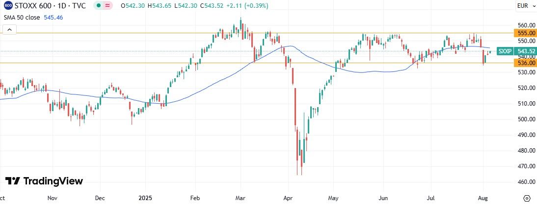 Euro STOXX 600 На дневном графике STOXX 600 оттолкнулся от уровня поддержки 536 пунктов. Если индексу удастся преодолеть 50-дневную скользящую среднюю в районе 545 пунктов, целью дальнейшего роста станет отметка 555 пунктов.