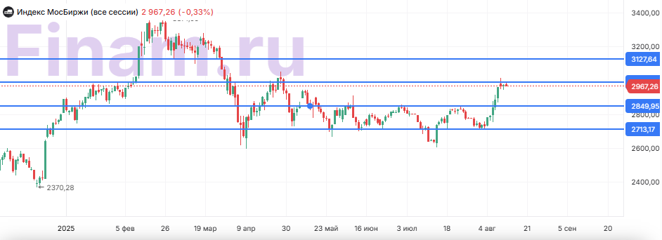 В среду, 13 августа, на рынках снова наблюдается позитивная динамика. Инвесторы продолжают в положительном ключе отыгрывать вчерашние данные по инфляции в США. Рост потребительских цен в Штатах в целом совпал с ожиданиями рынка, что немного поубавило опасения относительно влияния пошлин на инфляцию. На этом фоне участники рынка стали закладывать вероятность снижения ставки ФРС на сентябрьском заседании в 94%, что стало позитивом для большинства мировых индексов. Основные фондовые индексы США во вторник показали позитивную динамику - Dow Jones вырос на 1,10%, S&P 500 - на 1,13%, а технологический Nasdaq Composite прибавил 1,39%. При этом индексы S&P 500 и Nasdaq в очередной раз обновили свои исторические максимумы. Сегодня фьючерсы на американские индексы продолжают умеренный подъём. Китайский и европейский рынки сегодня также показывают положительную динамику вслед за вчерашним ростом рынка в Штатах. Сегодня инвесторы будут ждать публикации квартального отчёта Cisco, а из макроэкономических данных можно выделить еженедельную статистику по запасам нефти в США от EIA и статистику по недельной инфляции в РФ. По состоянию на 11:45 мск индексы МосБиржи и РТС снижаются на 0,30%. Сводный европейский фондовый индикатор Stoxx 600 подорожал на 0,46%. Китайский CSI 300 вырос на 0,79%, а гонконгский HangSeng- на 2,58%. Фьючерс на S&P 500 растёт на 0,18%, доходность 10-летних казначейских облигаций США уменьшилась на 5 б.п. до 4,25%. Стоимость октябрьских фьючерсов на нефть Brentпонижается на 0,73% до $ 65,6 за баррель. На американской расширенной торговой сессии падение на 11,26% показали акции провайдера инфраструктуры для ИИ CoreWeave. Выручка по итогам прошедшего квартала и прогноз на будущее превысили прогнозы, однако от компаний в сфере ИИ инвесторы сейчас ждут более уверенного опережения ожиданий. В Гонконге лучше рынка выглядели акции производителя свинины WH Group, прибавившие 6,23% на фоне публикации отчёта, показавшего рост операционной прибыли на 10,4% г/г по итогам первого полугодия. В Европе среди компаний из индекса EuroStoxx50 наибольший рост показывают Prosus (+3,63%), SAP (+2,06%) и Essilor Luxottica (+2,05%). Динамику хуже рынка демонстрируют следующие акции: Stellantis (-1,09%), Total Energies (-1,09%) и Scheider Electric (-0,77%). Российский рынок в первой половине торгов в среду демонстрирует незначительное снижение. Инвесторы продолжают ждать встречи президентов США и РФ, которая состоится в пятницу. Вероятно, итоги этой встречи и зададут среднесрочный вектор движения для российского рынка, а до неё волатильность торгов останется пониженной. В то же время некоторой нервозности перед встречей могут вызывать заявления представителей ЕС и Украины, которые имеют отличную от РФ позицию по траектории переговорного трека. В частности, сегодня инвесторы будут ждать совместного заявления Мерца и Зеленского, которое ожидается в 17:00 мск. Также негатива добавляют цены на нефть марки Brent, которые снова вплотную приблизились к отметке $ 65 за баррель. Ретейлер «X5» по итогам второго квартала увеличил выручку на 21,6% г/г до 1 174,2 млрд руб., а скорр. EBITDA– на 7,2% г/г до 78,9 млрд руб. При этом чистая прибыль компании сократилась на 15,5% г/г до 29,8 млрд руб. Акции компании показывают нейтральную динамику после отчёта. «VK» по итогам первого полугодия увеличил выручку на 12,7% г/г до 72,6 млрд руб., но в очередной раз получил убыток, который составил 12,7 млрд руб. При этом менеджмент повысил прогно