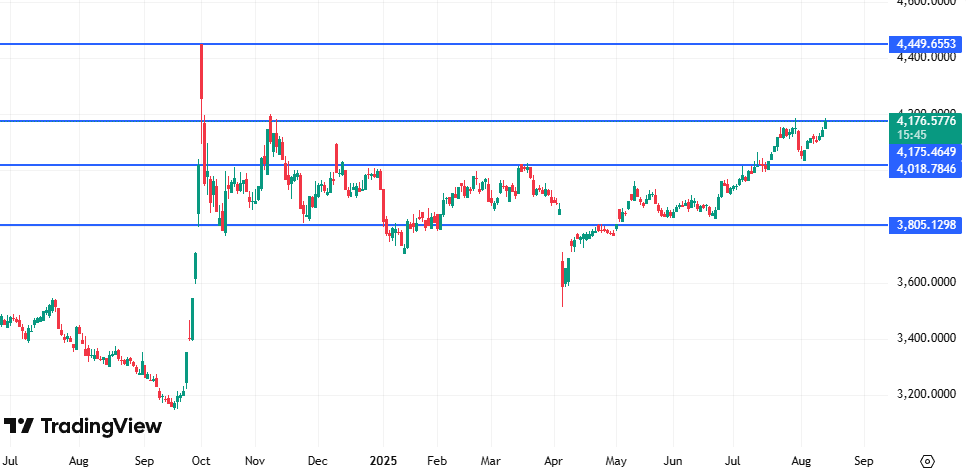 CSI 300 На дневном графике CSI 300 во второй раз подошёл к важному сопротивлению у отметки 4 180 пунктов, что увеличивает вероятность его пробития с последующим ростом до сопротивления на уровне 4 450 пунктов.