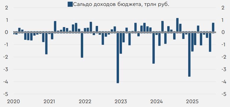 Во вторник на мировом рынке превалировал осторожный оптимизм. Минтруда США вчера объявило о пересмотре числа занятых с марта 2024 по март 2025 вниз на 911 тыс. Впрочем, это не оказало яркое влияние на рисковые активы, инвесторы пребывают в ожидании ценовой статистики в США. Российский рынок вчера показал разнонаправленную динамику. Ослабление рубля поддержало ряд бумаг, но также могло способствовать умеренной коррекции на долговом рынке – инвесторы могут опасаться, что в таких условиях Банк России не решится на резкое снижение ключевой ставки. С другой стороны, вышедшие вечером данные за август указали на первый с марта помесячный профицит федерального бюджета. Инвесторы в мире сегодня будут отыгрывать утренние данные из Китая за август, показавшие падение потребительских цен в годовом выражении максимальными темпами с февраля. В дальнейшем на динамику рисковых активов значимо повлиять может августовский индекс цен производителей США. В России среда отметится выходом ряда вводных перед пятничным заседанием Банка России. Росстат выпустит не только недельные данные по инфляции, но и полную месячную статистику по ценам за август, которая может расходиться с оценками на основе недельных цифр. Кроме того, ЦБ РФ (несмотря на «неделю тишины») планирует опубликовать оперативную справку по сентябрьскому мониторингу предприятий. Особого внимания в ней будет заслуживать динамика ценовых ожиданий бизнеса. Нефть и рубль Нефтяные цены вчера подросли. При этом ночью в СМИ появились сообщения о призывах президента США к введению ЕС 100% пошлин на Китай и Индию за закупку российской нефти. На этом фоне сегодня фьючерсы Brent торгуются у $66,8/барр. Тем не менее возможность повторного ухода котировок к $66/барр. пока сохраняется, если опасения за предложение сырья у инвесторов вновь ослабятся. Во вторник рубль вновь заметно слабел. Опасения санкций вкупе с ожиданиями снижения ставки продолжают давить на российскую валюту. Сегодня курс CNYRUB находится у 11,88 руб./юань. Другие валюты EM с утра двигаются разнонаправленно. В целом риски дальнейшего ухода курса выше 11,90 руб./юань пока сохраняются. Бюджетная статистика в России Августовские данные по исполнению федерального бюджета указали на рост месячных доходов на 25% м/м до 3,41 трлн руб. Такая динамика обязана ненефтегазовым доходам (+50% м/м, 2,91 трлн руб.), которые увеличились в том числе благодаря дивидендному фактору. Важнее, что за август объем расходов сократился сразу на 35% м/м до 2,73 трлн руб. В результате после июльского дефицита в 1,49 трлн руб. бюджет был исполнен с максимальным за год профицитом в 0,69 трлн руб. Накопленный с начала года дефицит сократился до 4,19 трлн руб. Текущие планы Минфина по годовому дефициту (3,79 трлн руб.) вряд ли будут выполнены, но в контексте ДКП важнее первичный структурный баланс. Если Минфин в новых проектировках все же анонсирует использование ФНБ на сверх расходы, снижение «ключа» замедлится. Месячный профицит/дефицит федерального бюджета РФ