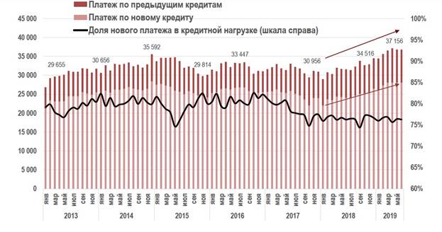 Отмечается также рост суммы ежемесячного платежа по вновь получаемым ипотечным кредитам. С начала 2018 года этот показатель вырос в целом по стране с 25 до 28 тыс. руб. (+ 12%), а общая долговая нагрузка на клиента с ипотечным кредитом выросла за тот же период с 32 до 36,5 тыс. руб.