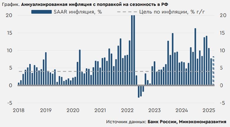 На мировом рынке уровни волатильности на прошлой неделе зашкаливали. Вначале инвесторы отыгрывали неожиданно жесткие масштабные пошлины США против целого ряда стран, но затем они были поставлены «на паузу» на 90 дней. На этом фоне глобальный рынок вернулся к росту, но череда взаимных повышений тарифов между КНР и США вновь ухудшила настроения у инвесторов. В этих условиях мартовские данные, показавшие значимое ослабление ценового давления в США, не оказали заметное влияние на рисковые активы. Российский рынок во многом следовал за глобальными трендами. При этом локально некоторому негативу могут способствовать относительно жесткие заявления главы Банка России и вечерние данные пятницы, показавшие более сильный рост цен в РФ в марте, чем оценивалось по недельным данным. Глобальный рынок на этой неделе продолжит следить за развитием «торговых войн». Особое внимание инвесторы также обратят на пул мартовской экономической статистики из Китая, в том числе по ВВП страны за первый квартал, а для динамики евро принципиальными будут итоги заседания ЕЦБ. В России в ближайшие дни выйдет целый ряд статистики, которая задаст тон заседанию ЦБ на следующей неделе. В частности, регулятор выпустит апрельские инфляционные ожидания российского населения и бизнеса, мартовские данные по кредитованию и свою оценку сезонно-скорректированной инфляции за прошлый месяц. Нефть и рубль На прошлой неделе на рынке сырья была повышенная волатильность. Эскалация «торговых войн» в моменте толкала цены к многогодовым минимумам, но затем некоторое смягчение позиции США позволило котировкам восстановиться. Сегодня фьючерсы Brent торгуются у $64,6/барр. Пока риски повторного ухода нефти к $62/барр. сохраняются в условиях развивающейся ситуации с пошлинами. Рубль в последние дни тяготел к укреплению. Негатив от упавших цен на сырье пока ограничивается заметно выросшими в апреле продажами валюты со стороны ЦБ. На фоне позитивных геополитических новостей сегодня курс CNYRUB находится у 11,30 руб./юань. Другие курсы валют EM с утра двигаются разнонаправленно. У рубля остается потенциал к ослаблению, но на время курс может задержаться ниже 11,50 руб./юань. Ценовая статистика в России Вечером пятницы Росстат опубликовал полные данные за март, показавшие рост цен в стране на 0,65% м/м, что примерно на 0,10 п.п. выше оценок по недельным данным. В годовом выражении инфляция ускорилась с февральских 10,06% до 10,34% г/г. Ослабление ценового давления в непродовольственных товарах на фоне крепкого рубля пока компенсируется ростом цен на продовольствие и услуги. По оценкам Минэкономразвития, аннуализированная инфляция с поправкой на сезонность в марте составила 8,2% по сравнению с февральскими 7,6% (по оценкам ЦБ). Тем не менее цифры от Банка России, которые выйдут на этой неделе, могут значимо отличаться от оценок Минэка. В целом текущая динамика цен вкупе с рисками неустойчивости наблюдаемых сейчас трендов пока не располагают к смягчению ДКП в России.