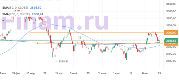 Также в фокусе инвесторов будет публикация данных по индексу потребительских расходов (PCE) за июль в пятницу. Ожидается, что базовый индекс PCE (исключая продовольствие и энергоносители) вырастет на 2,9% в годовом выражении, что несколько выше показателя июня (2,8%). Эти данные могут скорректировать рыночные ожидания по поводу будущих действий Федрезерва.