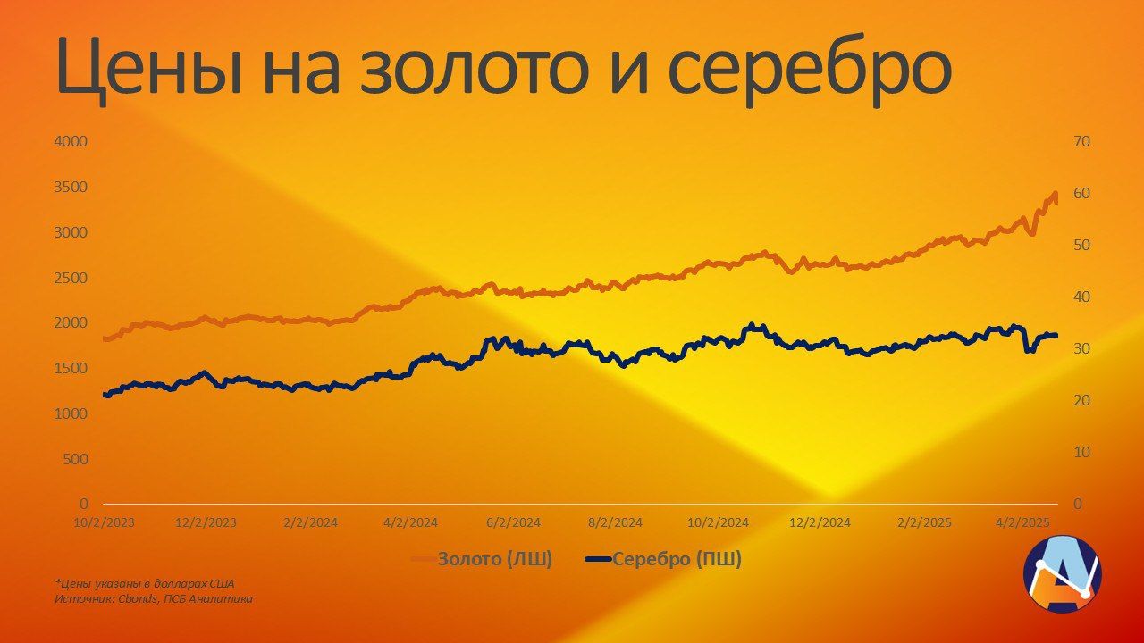 С октября 2024 года соотношение стоимости золота к серебру продолжило расти, особенно стремительно оно стало увеличиваться в апреле 2025 г., когда цена золота достигла исторических максимумов в районе $3500 за унцию.